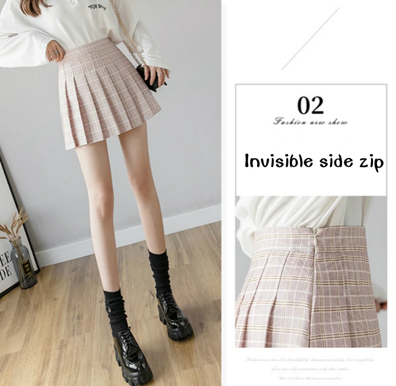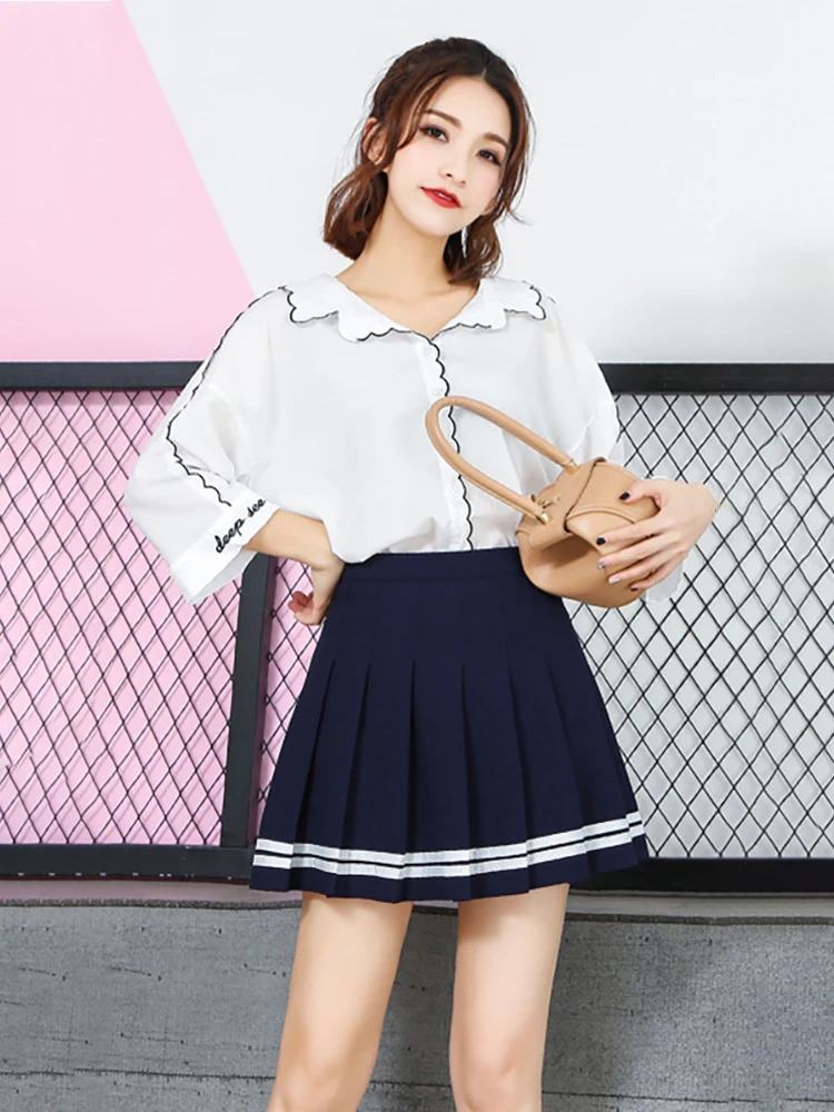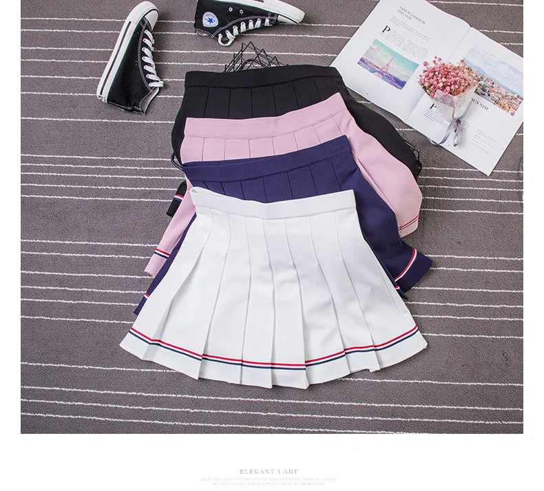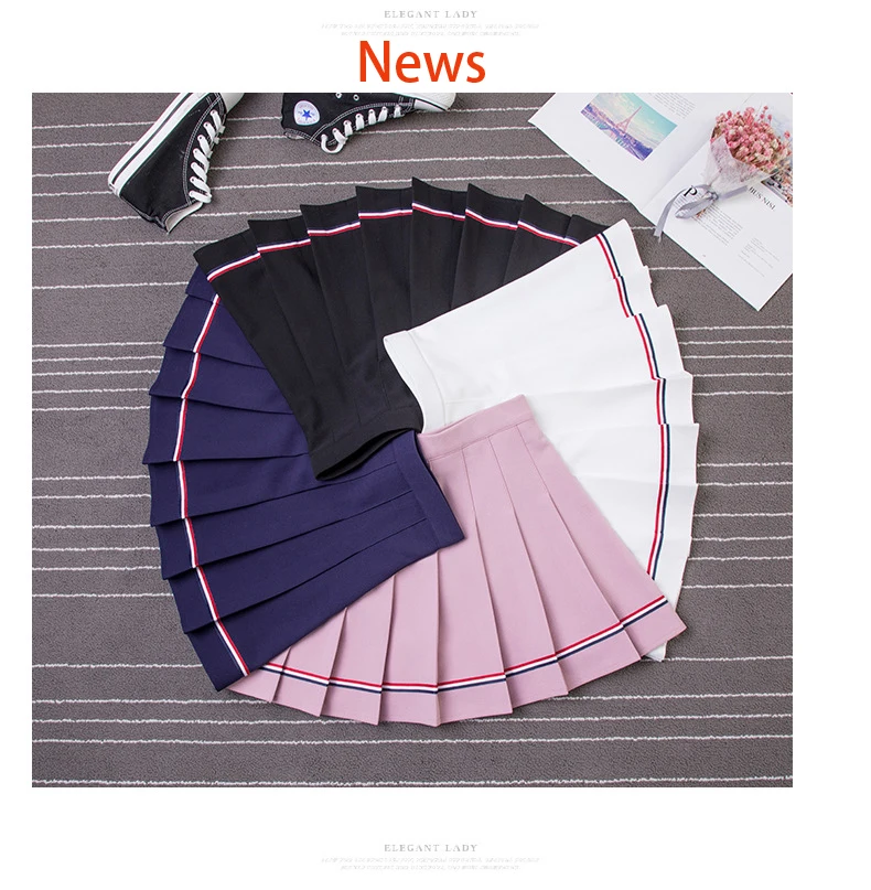 Черная мини-юбка плиссированная юбка в колледжском стиле Kawaii, Же...