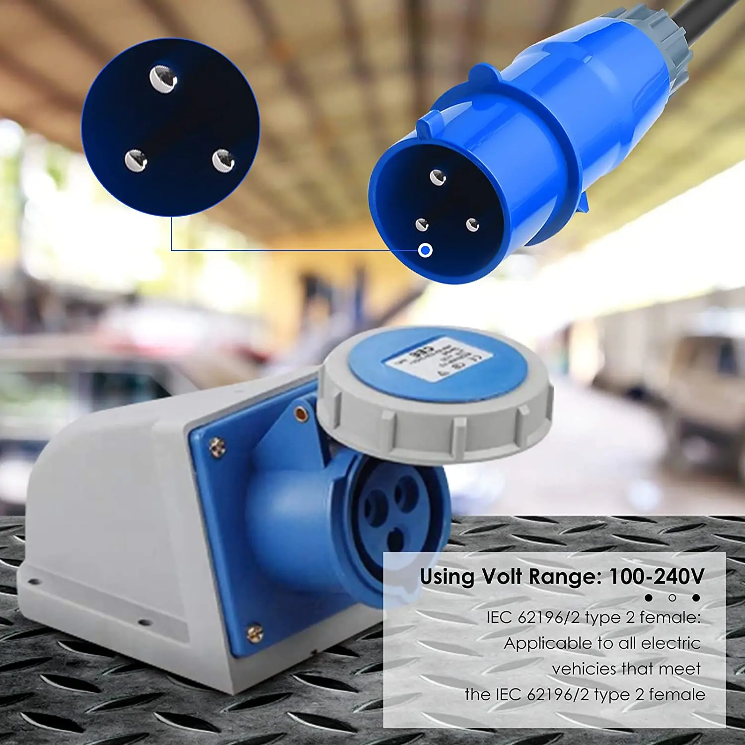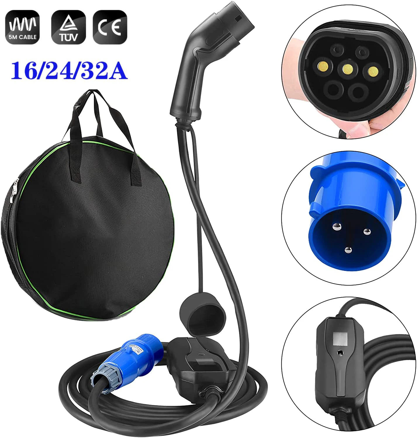 Портативное зарядное устройство для электромобилей, тип 2, IEC 62196-2, 32 А, вилка для электромобиля CEE, 220-240 В, автомобильный зарядный кабель