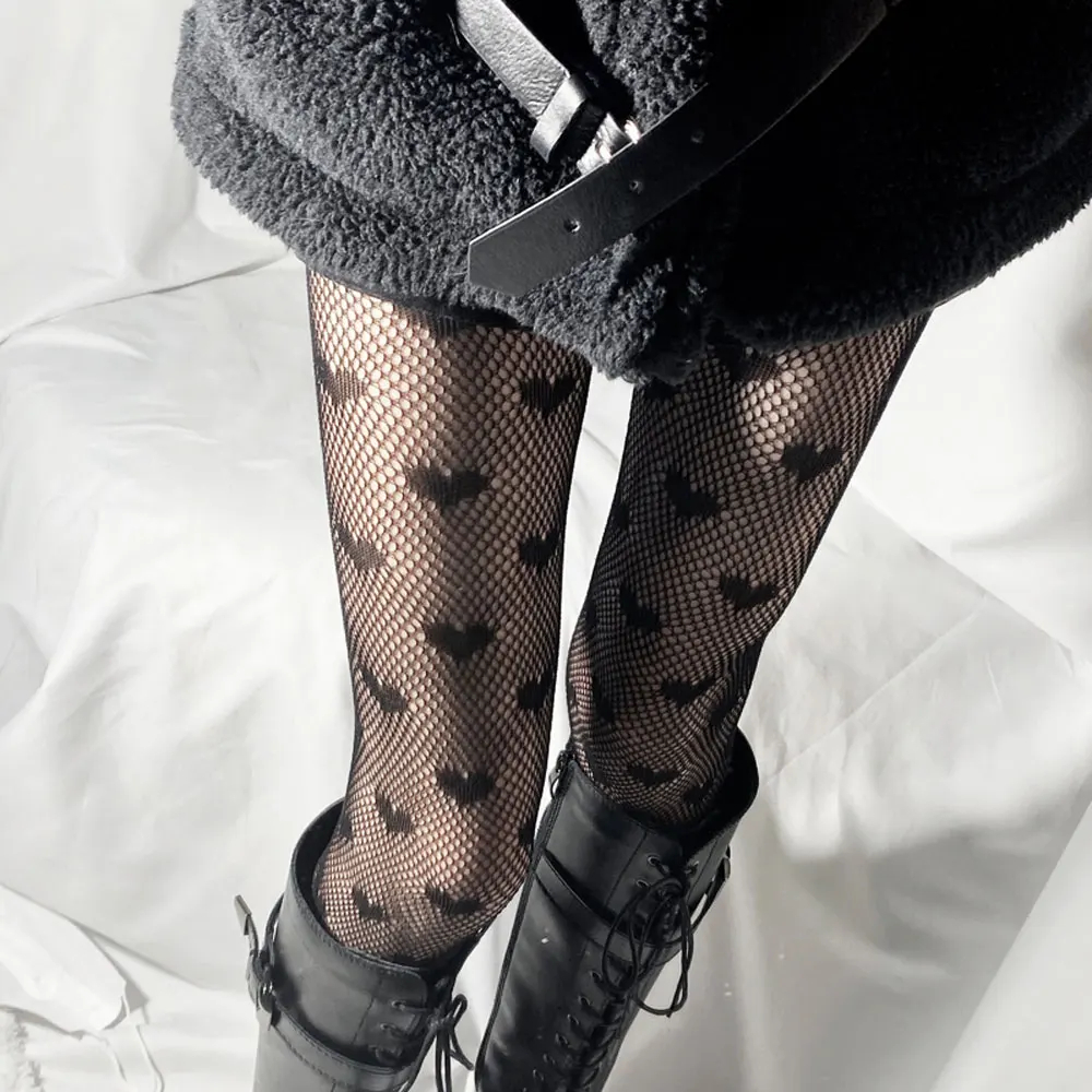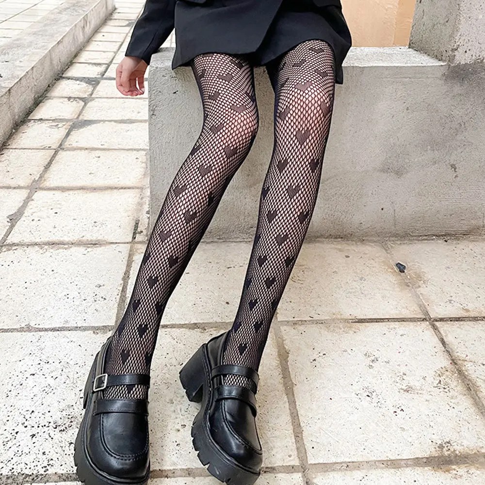 Сетчатые ажурные колготки с принтом сердца, Ажурные кружевные нейло...