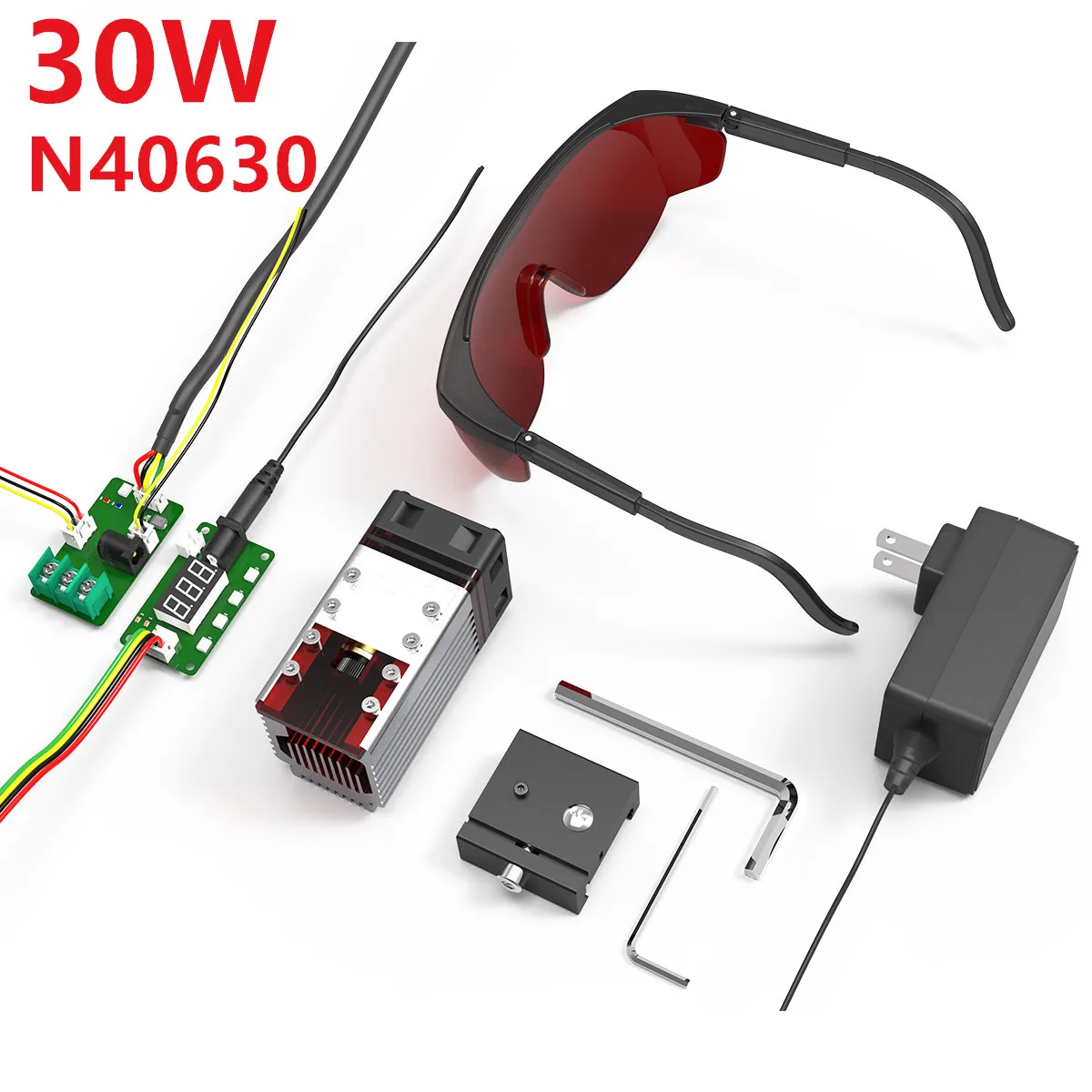 30 Вт лазерный модуль небольшие наборы посылка включает в себя:1x30 Вт модуль лазерной гравировки1 x лазерный модуль раздвижной арматуры1 x 4-контактный кабель (300 мм спортивные кабель)1 x NEJE цифровой ШИМ волновой Генератор импульсных сигналов регулируемая плата1x2,5 мм Г-образный ключ, дюймовый стандарт1 х 5 мм l-образный ключ(В комплект не входит блок питания 12 В 3 А и очки)