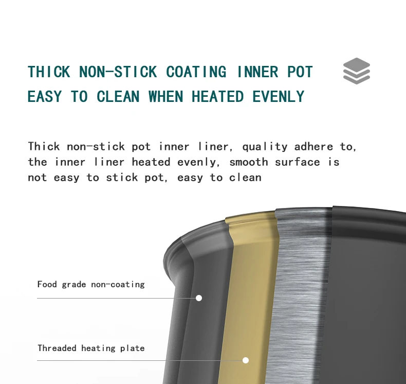 -Внутренний горшок антипригарной кастрюли равномерно нагревается и легко чистится. Поверхность гладкая и легко моется.