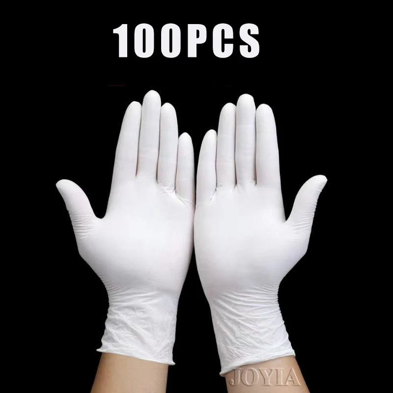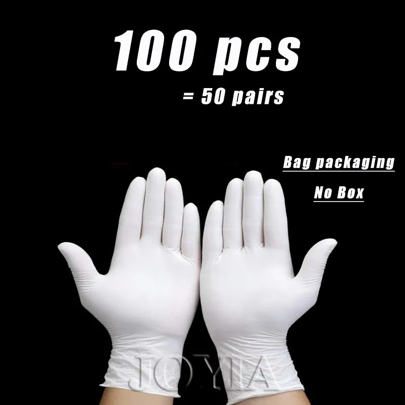 Белые нитрил перчатки 100 шт. одноразовые перчатки без порошка латекса виниловые смешанные перчатки Маленькие Средние Большие для домашнего использования на улице для работы