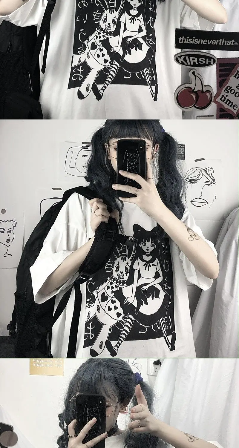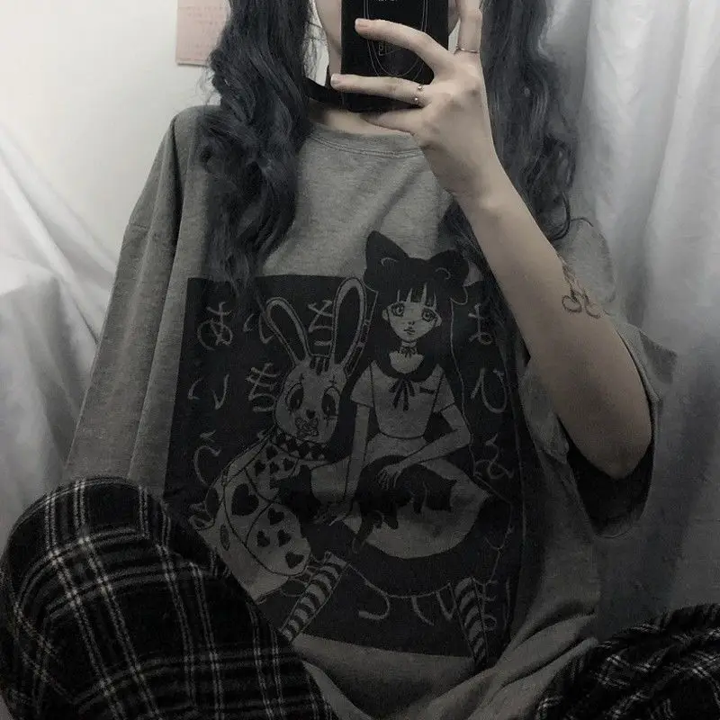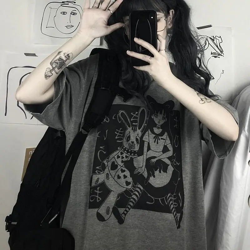Эстетическое готика, Харадзюку футболка с коротким рукавом и принто...