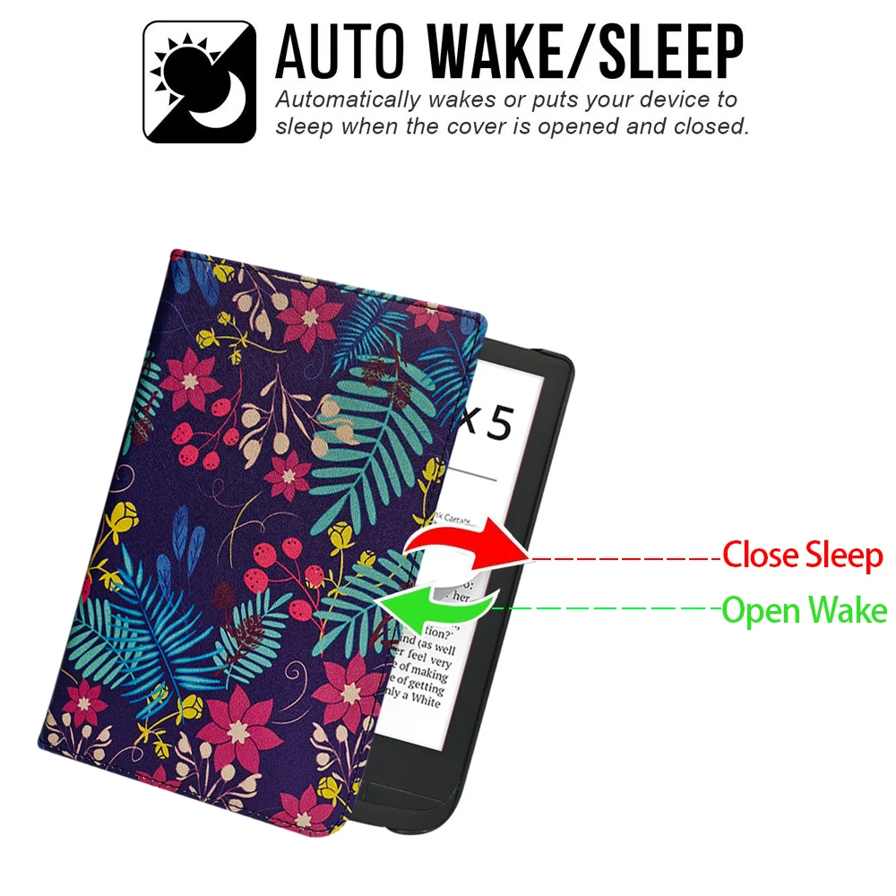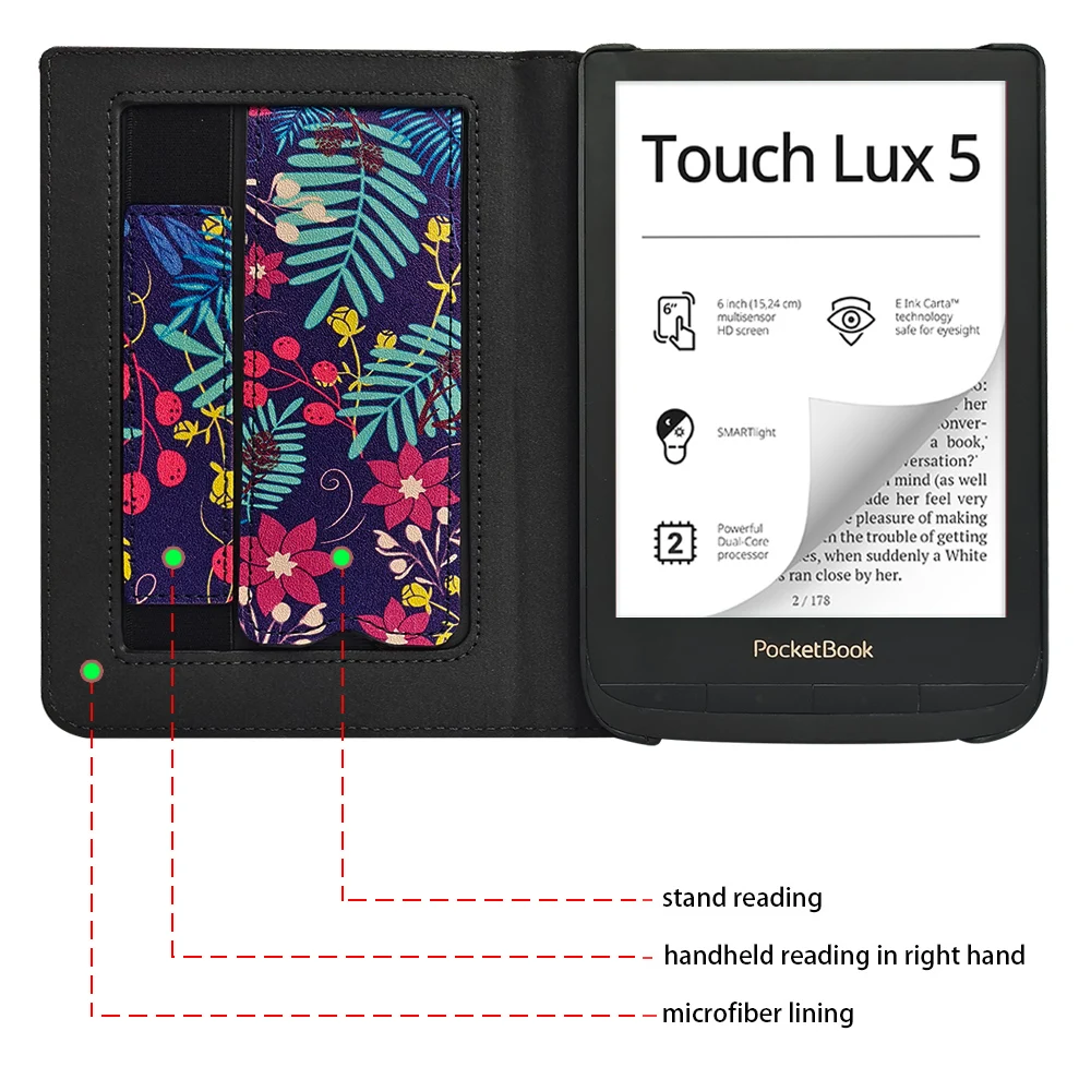 Чехол-подставка для Pocketbook 633632627628616606, подходит для PocketBook ColorTouch HD 3Touch Lux 4 5 с автоматическим спящим режимомпробуждениемремешком на руку