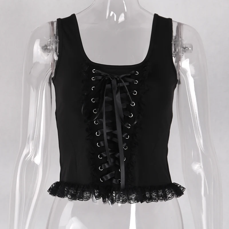 Женский топ с кружевом InsGoth, черный топ без рукавов, с сетчатыми...