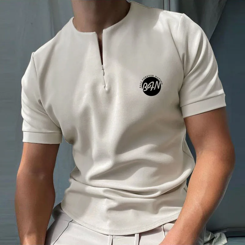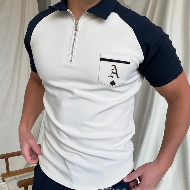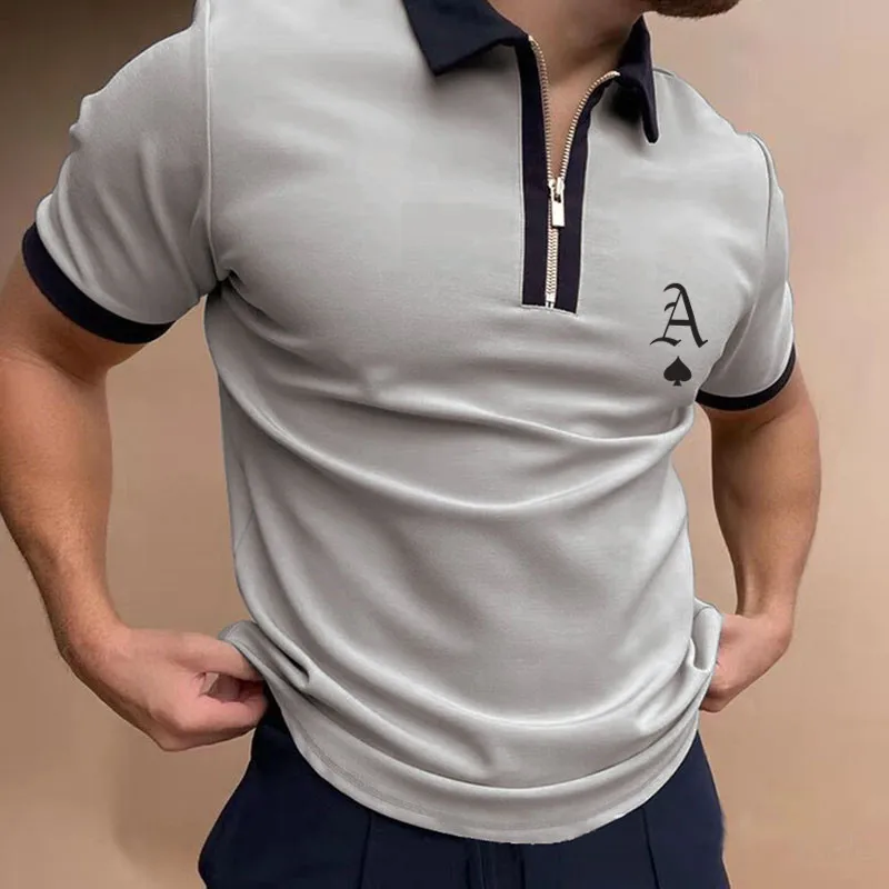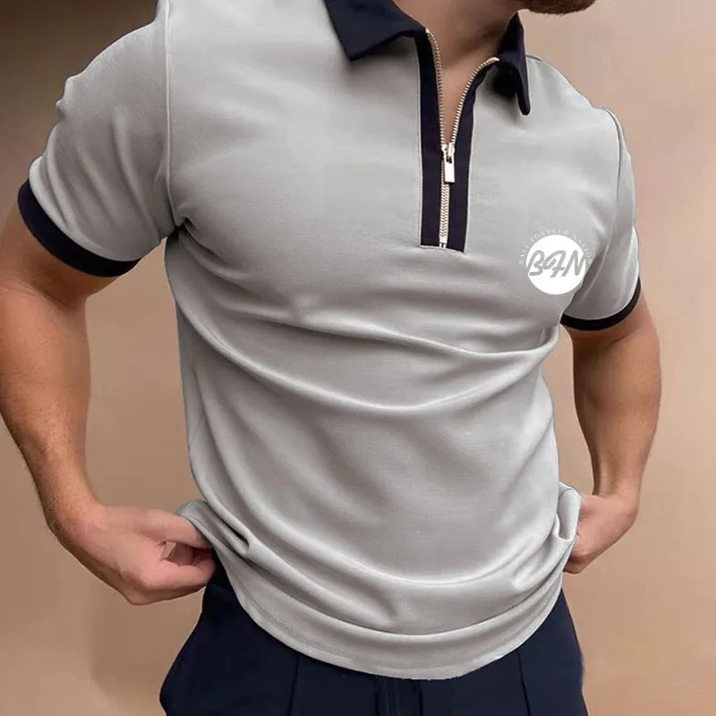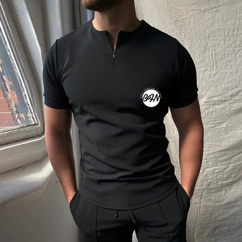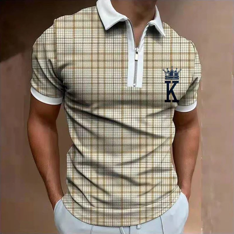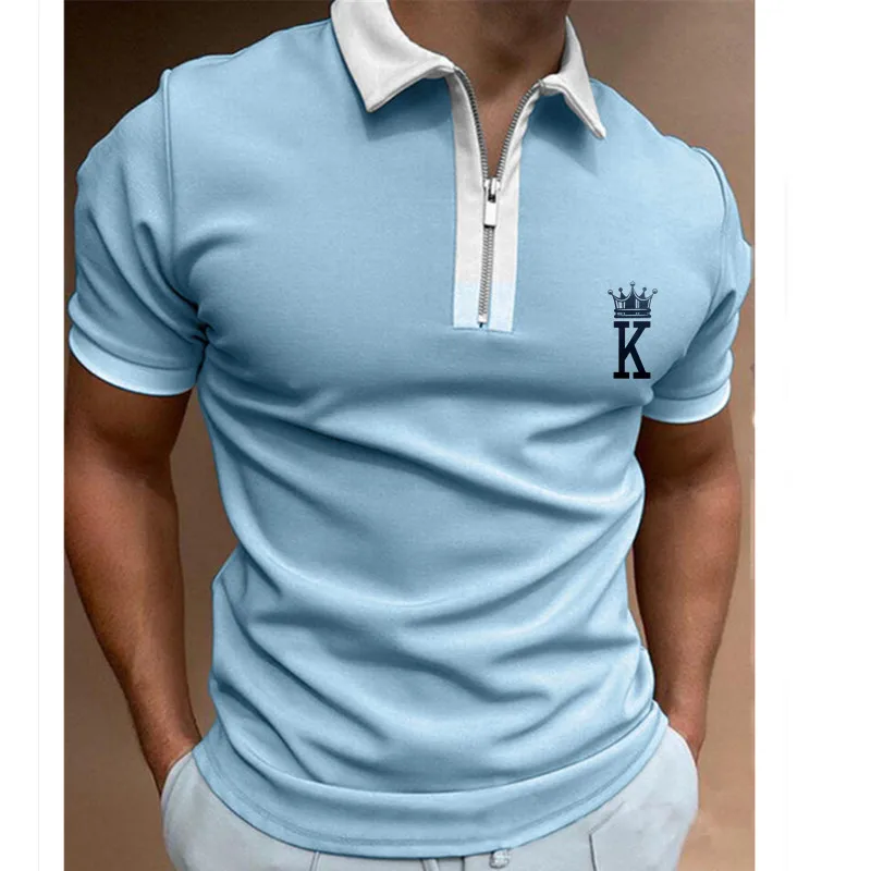 Мужская рубашка-поло, с коротким рукавом и вырезом на молнии, роскошный пуловер, размеры США, лето новое поступление, горячая распродажа
