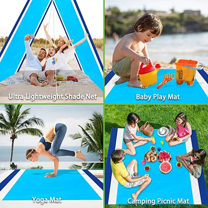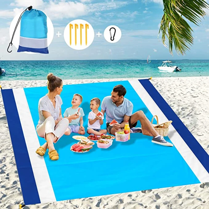 2021 большой пляжный коврик для полотенец, Непродуваемые водонепроницаемые одеяла для пикника без песка, пляжный коврик, Большой карманный коврик для пикника с 4 якорями