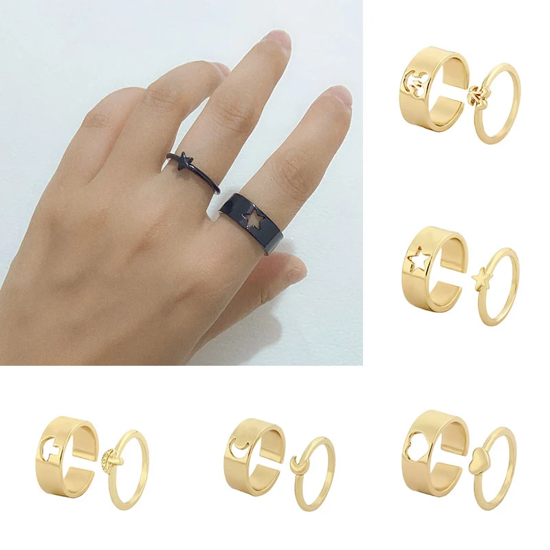 Комплект из 2 предметов, набор колец Луна пятиконечная звезда с выемками сплав кольцо украшения грибы Творческий Серебряное кольцо пары кольцо дружбы