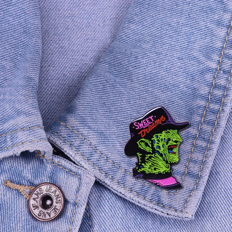 Брошь-значок в виде фильма ужасов, металлическая, медная, "Кошмар на улице Вязов", с Фредди Крюгером, эмалированные для одежды