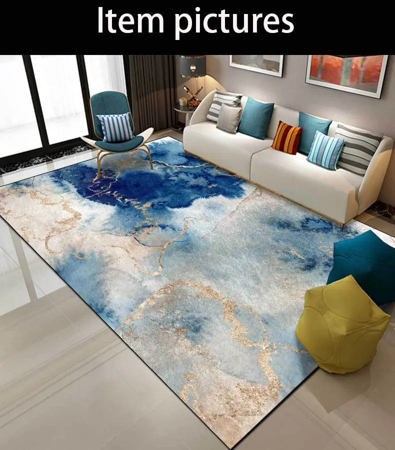 Современный абстрактный акварельный золотистый коврик с синими чернилами, прикроватный нескользящий коврик для гостиной, спальни, дверной коврик