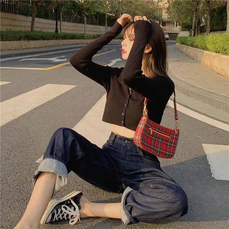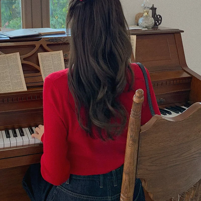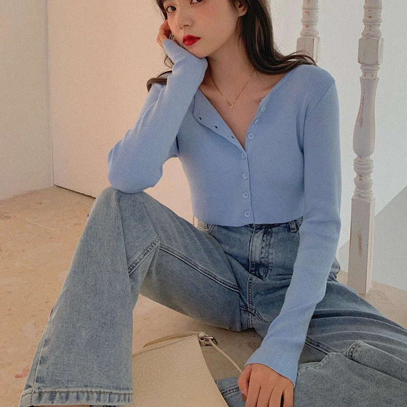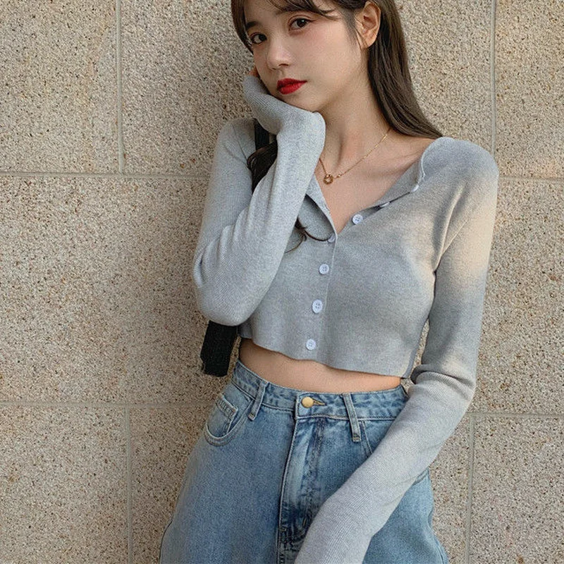 Женские кардиганы, однотонные вязаные эластичные укороченные топы с круглым вырезом в стиле БМ, модные Уютные милые ретро-топы в стиле ольччан, универсальные облегающие топы, Лидер продаж