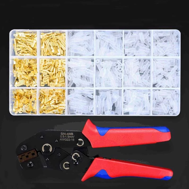 Обжимной инструмент SN-48B, 600 шт., 4,86,3 штекер, обжимные плоско...