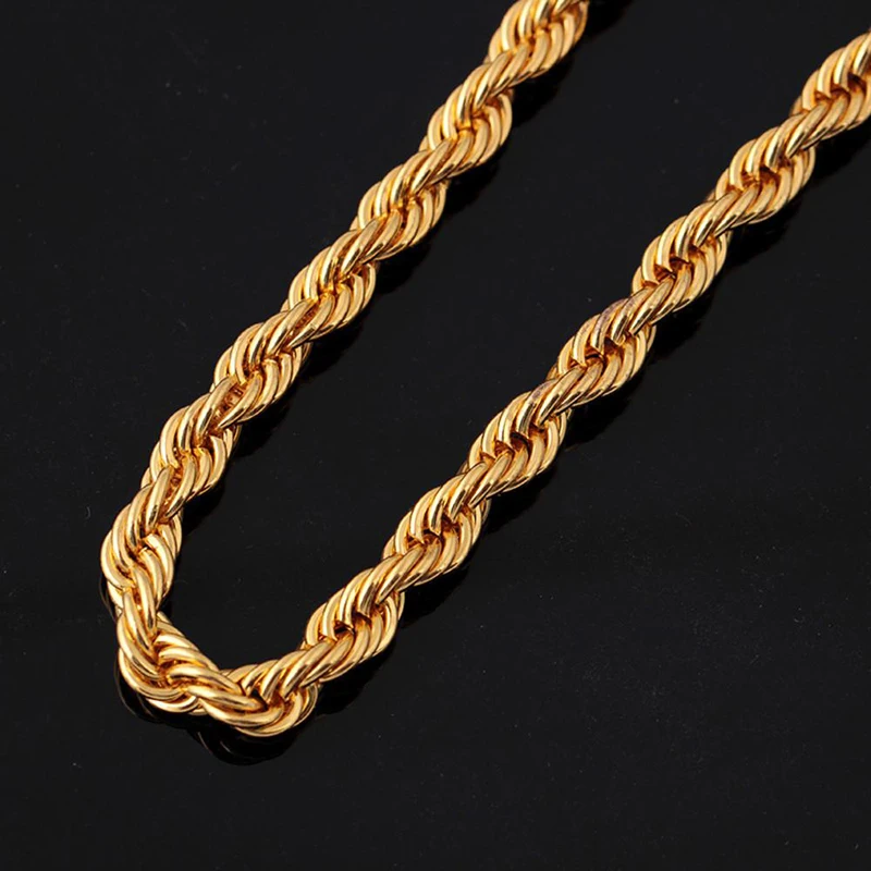 Золотистого цвета скрученный канат форме плетённого кольца для мужчин в стиле хип-хоп и рэп, 4 мм из нержавеющей стали для украшений ручной работы колье минималистское ожерелье ювелирные изделия
