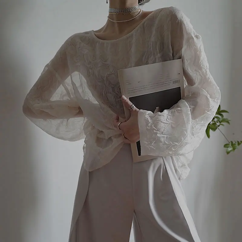 XITAO, новинка, Женская открытая футболка с открытой спиной, одноцветная, с длинным рукавом, летний солнцезащитный пуловер, топ, модный, с мятой CLL1533