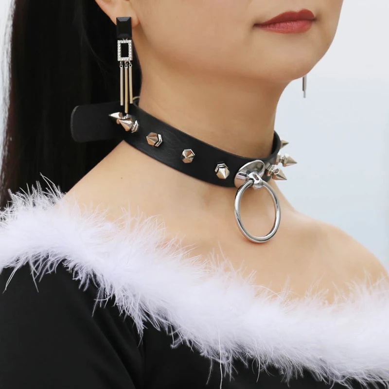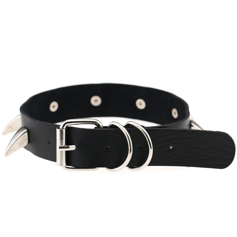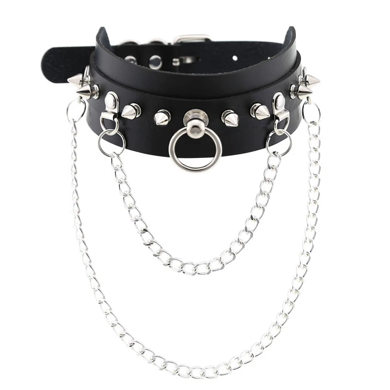 Ожерелье женское кожаное, в готическом стиле, серебристого цвета