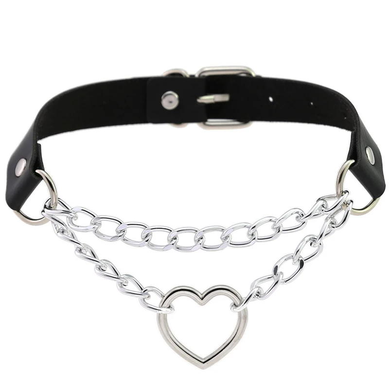 Ошейник женский кожаный с цепочкой в виде сердца, в готическом стиле
