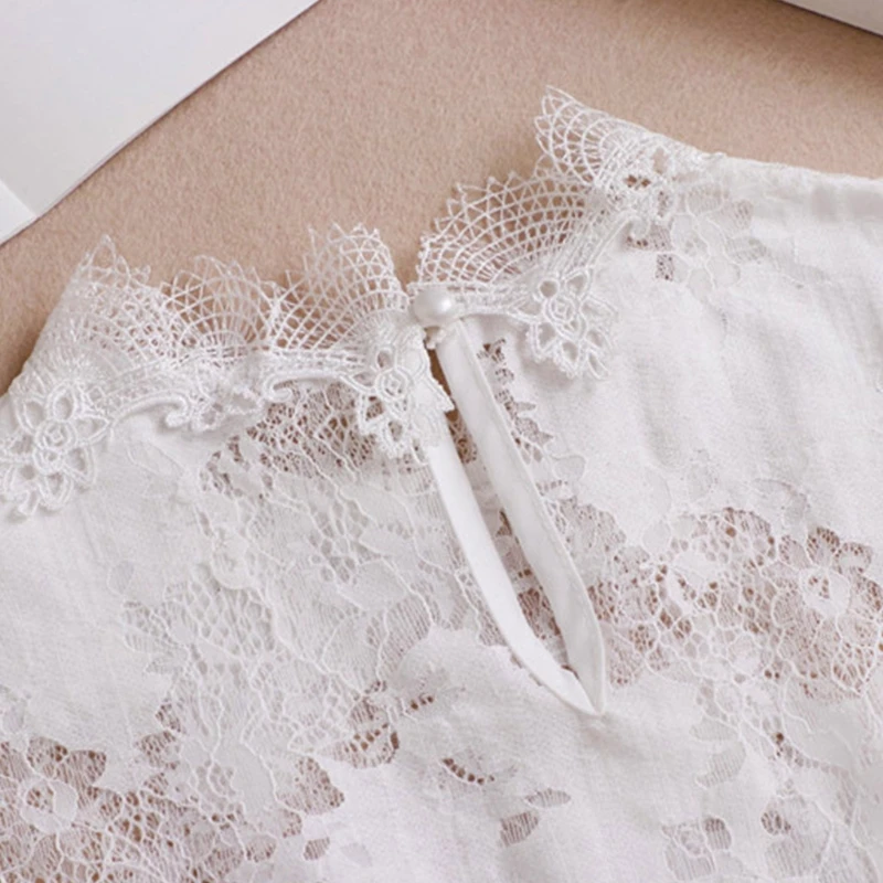 28GD Корейская Женская водолазка с ложным фальшивым воротником, элегантный ажурный цветочный кружевной свитер, декоративная дикая Съемная полублузка