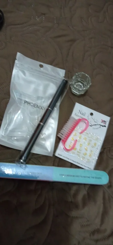 всё пришло,но средство PHOENIXY Slip Solution Nail System 30мл пришла бутылочка поцарапанная и впечатление толи не до лили либо от лили,даже на картинке пузырёк полный .В целом впечатление хорошее,лампа работает всё остальное пришло без изъяна