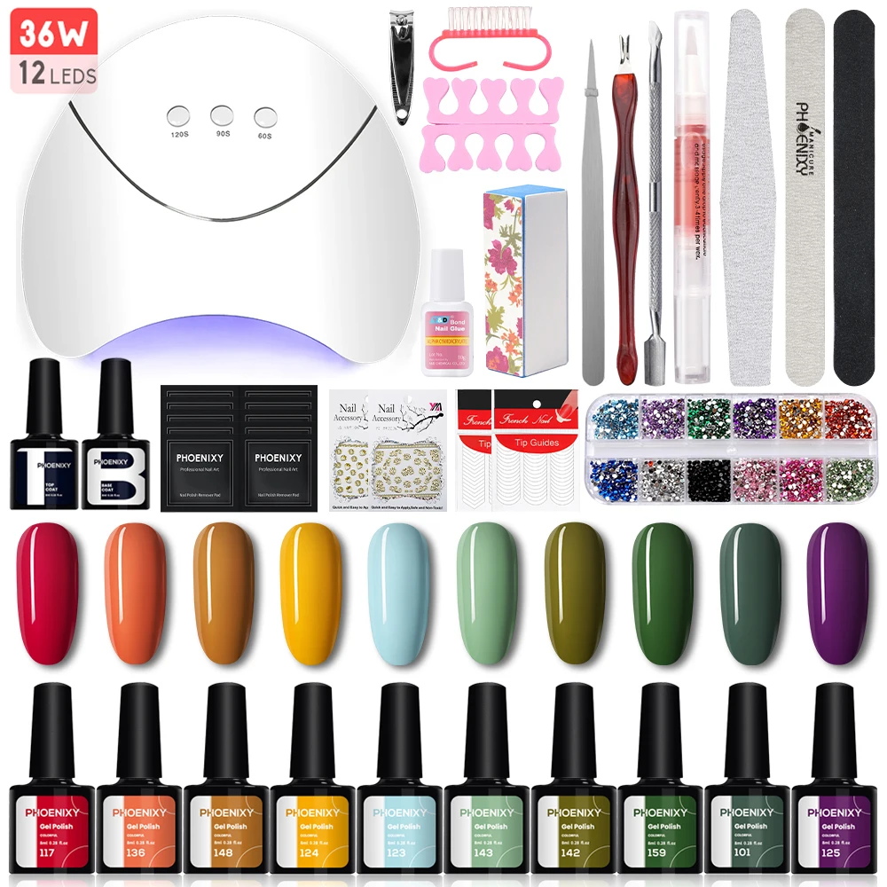 Набор УФ полуперманентного гель-лака для ногтей принадлежности для профессиональных акриловых ногтей полный комплект сушильная лампа для ногтей для маникюра