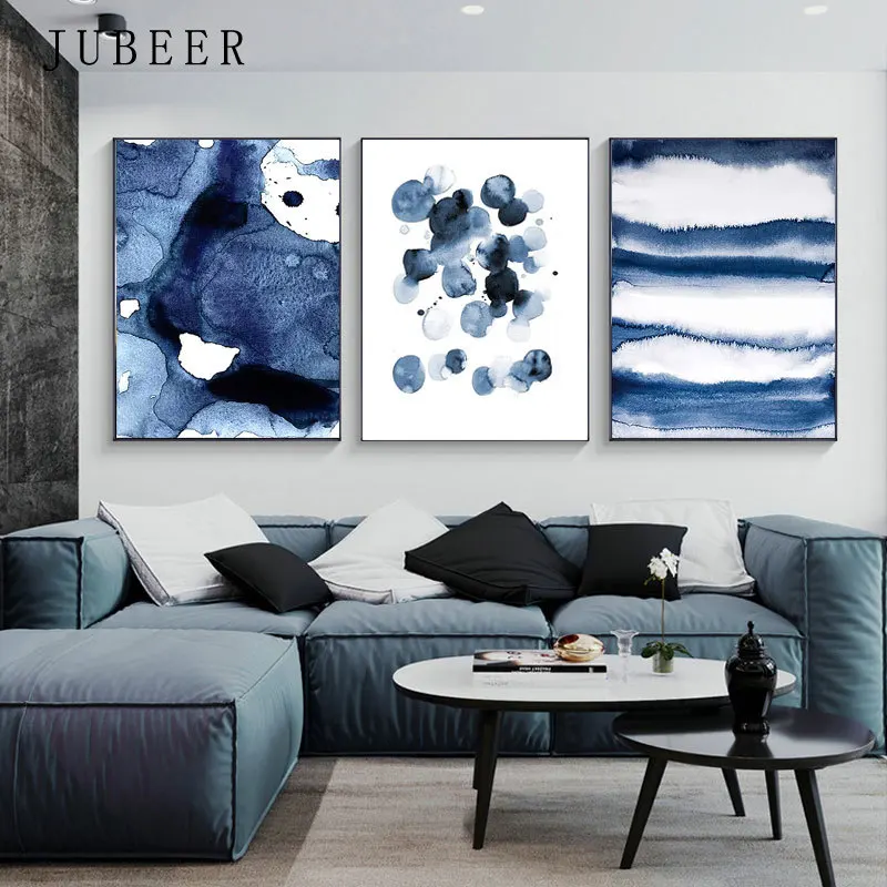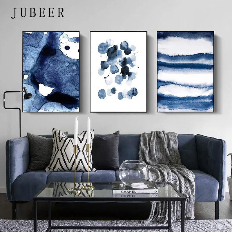 Скандинавский стиль, геометрический холст, настенная живопись, цветочный синий интерьер, картины, настенные постеры, картинки для гостиной, спальни, Декор