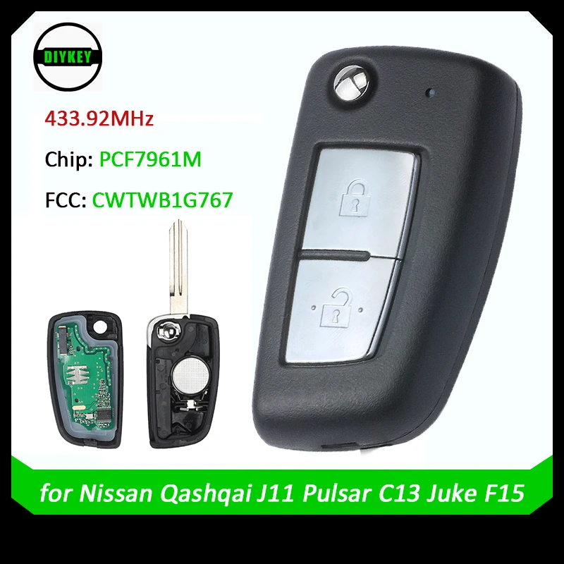 DIYKEY 2 кнопки флип Автомобильный Брелок дистанционного управления с ключом 433,92 МГц PCF7961M чип для Nissan Qashqai,X-Trail,Pulsar,Micra,Juke, CWTWB1G767