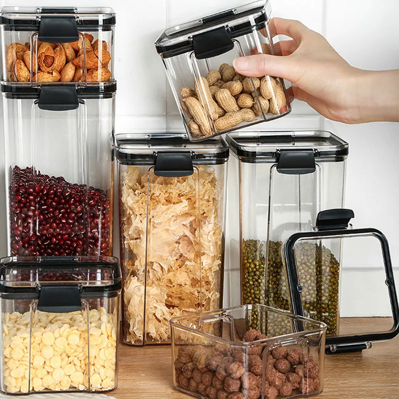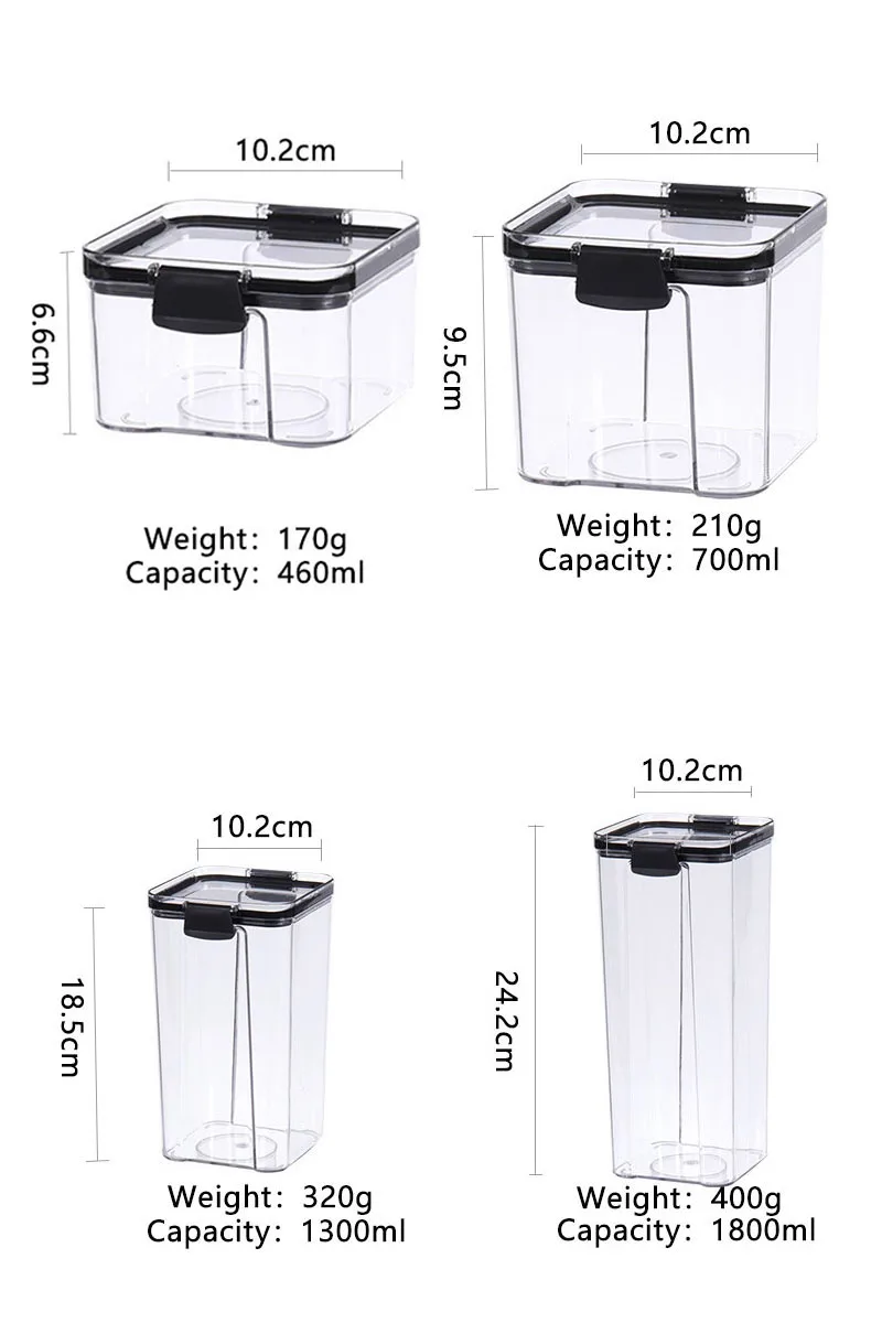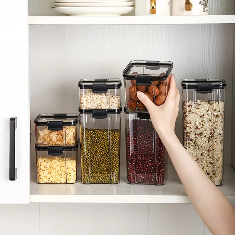 Новый квадратный пластиковый прозрачный контейнер для хранения еды, кухонный холодильник, многозернистый контейнер для хранения пасты, прозрачная герметичная банка