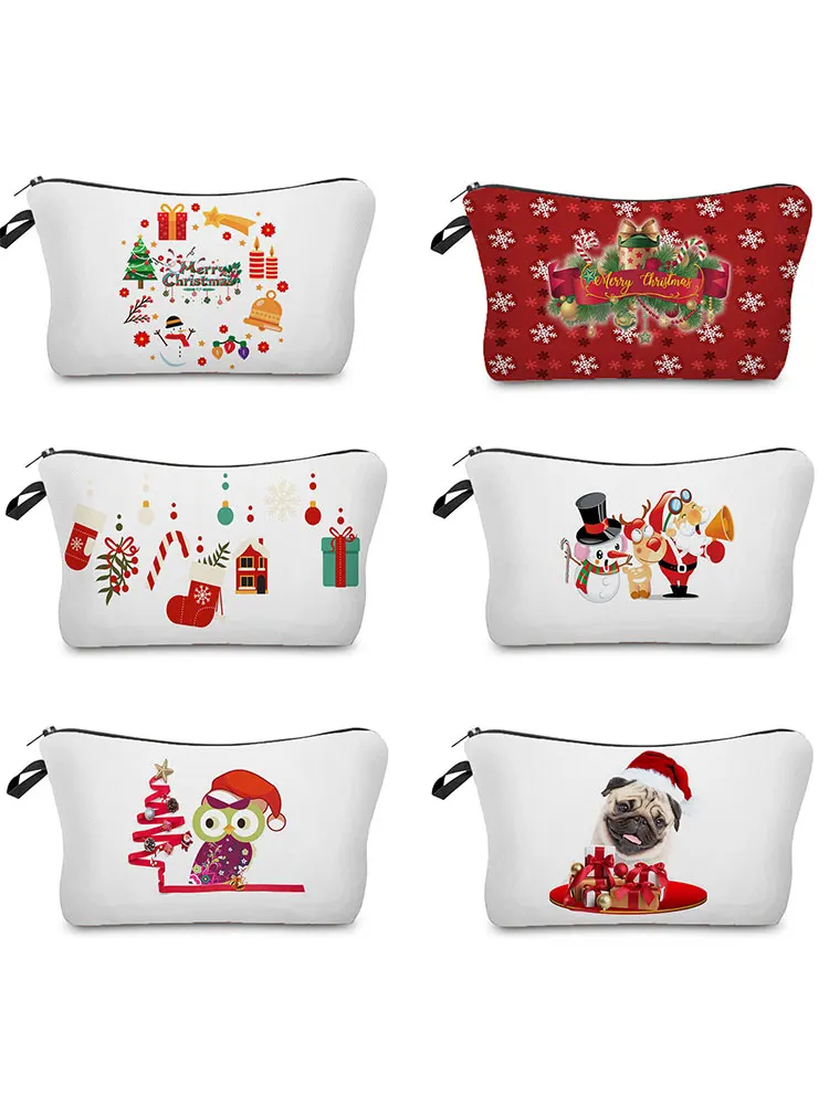Косметичка с принтом Санта-Клауса, женская косметичка из полиэстера, красный Мини-клатч, сумка для телефона, портативная дорожная Рождественская сумка для хранения, подарок