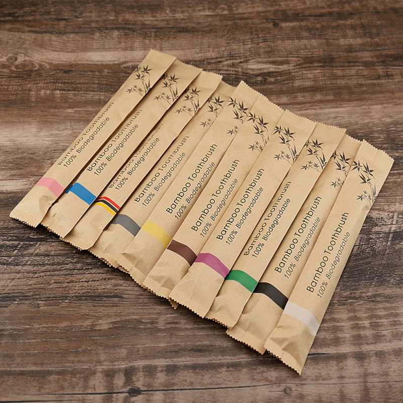 Креативная бамбуковая зубная щетка для путешествий, необходимая одноразовая зубная щетка для отеля, оптовая продажа, набор зубных щеток, биоразлагаемый материал, упаковка