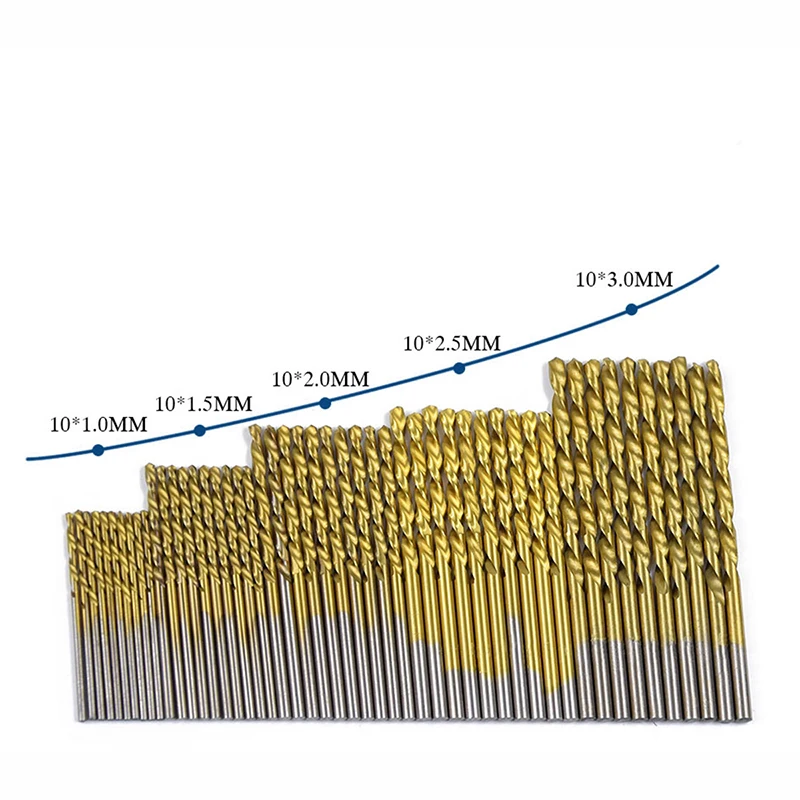 50 шт. титановые сверла из быстрорежущей стали с покрытием 1,5 мм-10 мм высокоскоростные сверла из быстрорежущей стали набор для электрических сверл инструменты