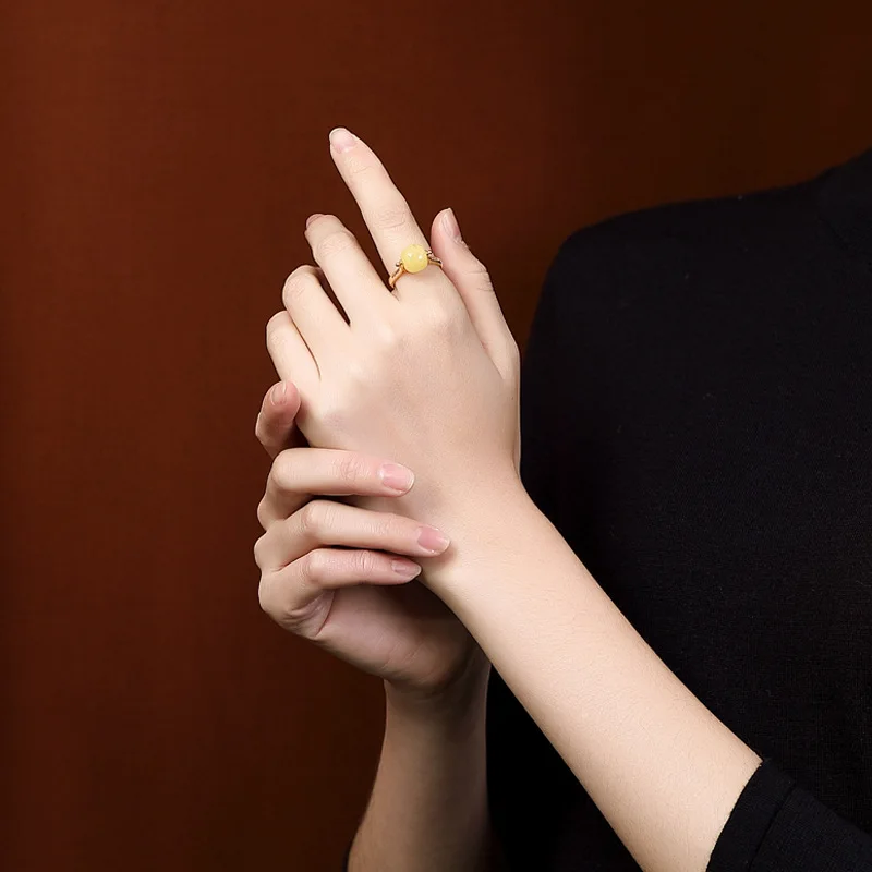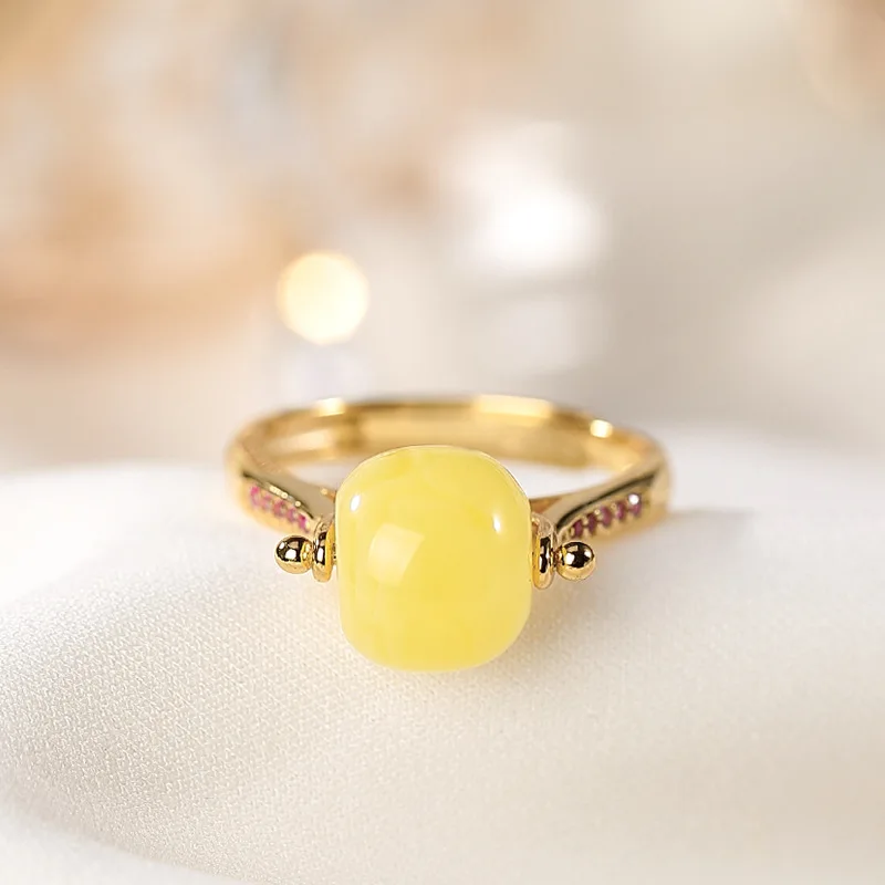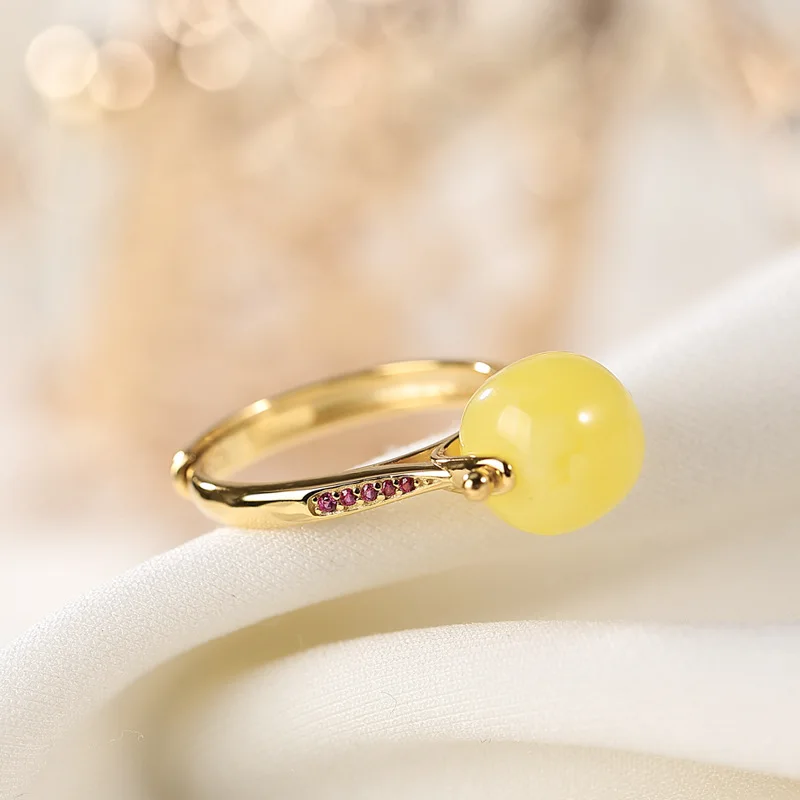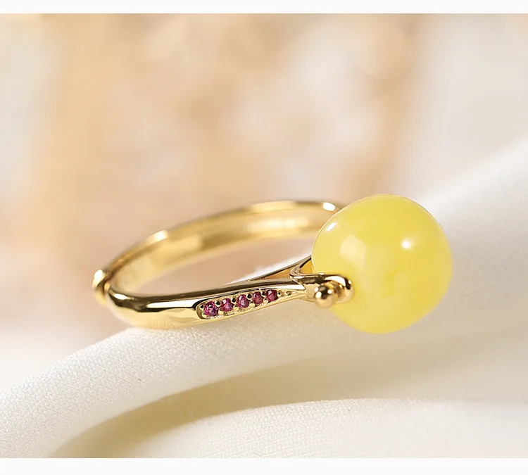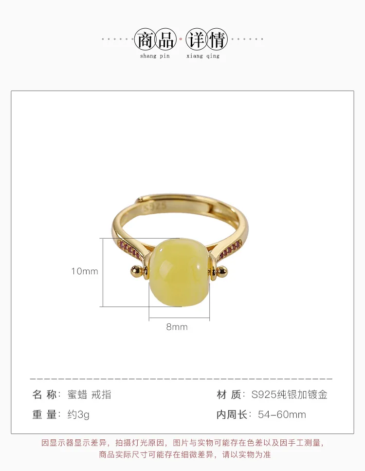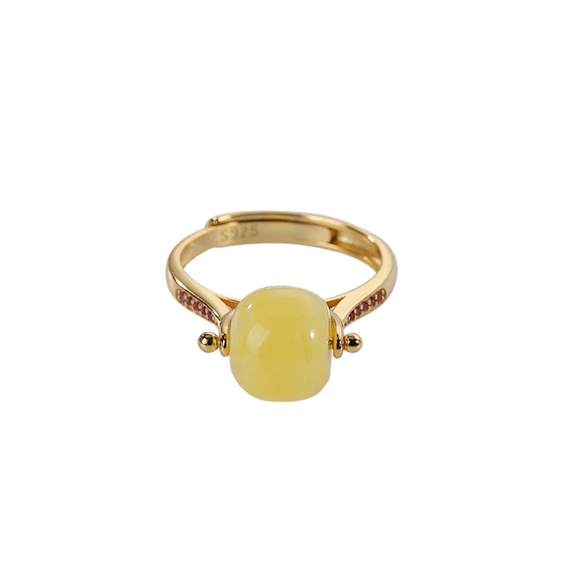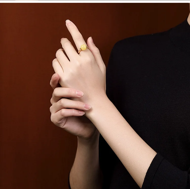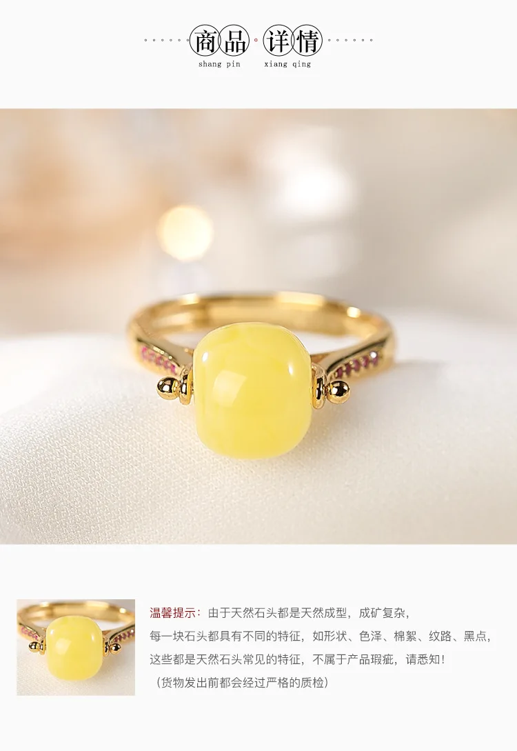 Изящные Ювелирные изделия, лидер продаж, Новые позолоченные кольца из стерлингового серебра S925 с натуральным Янтарь из воска, милое овальное элегантное женское кольцо K0138