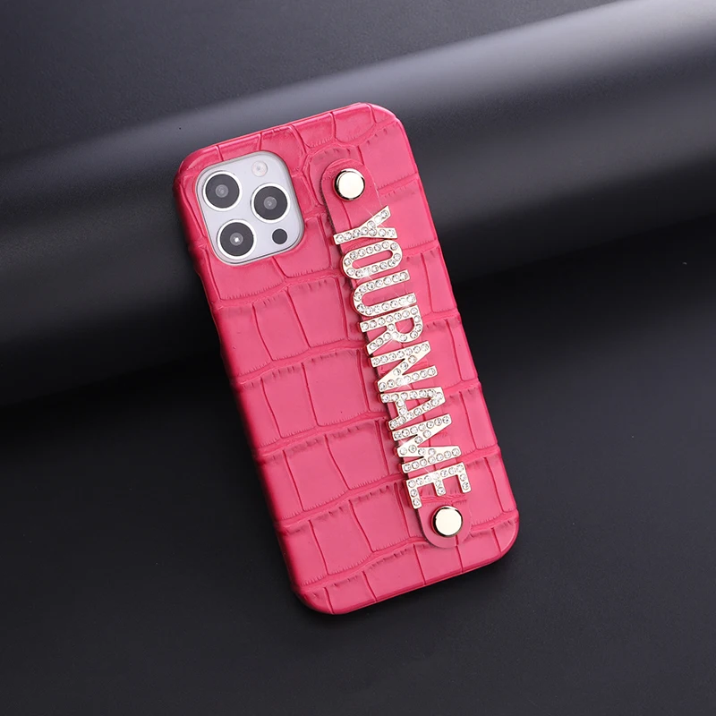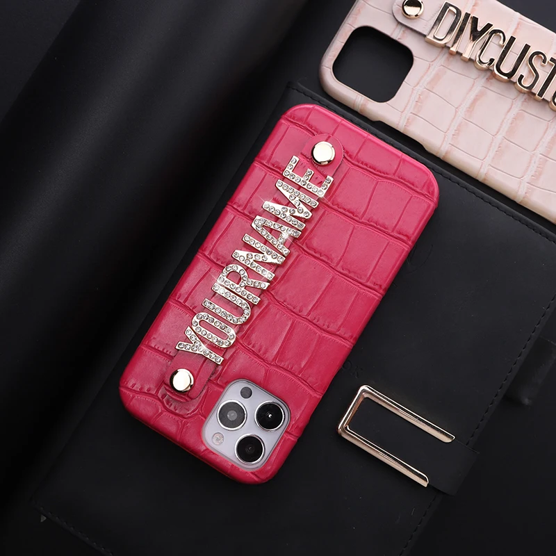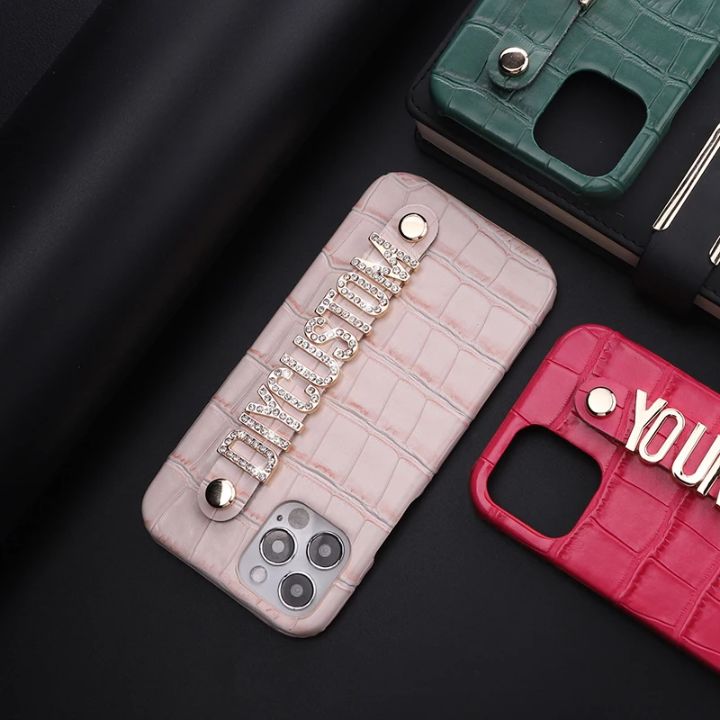 Роскошный чехол из крокодиловой кожи с именем под заказ для телефона iphone 11 12 13 Pro Max Mini 7 Plus X XR XS Max, металлический чехол с алмазными буквами
