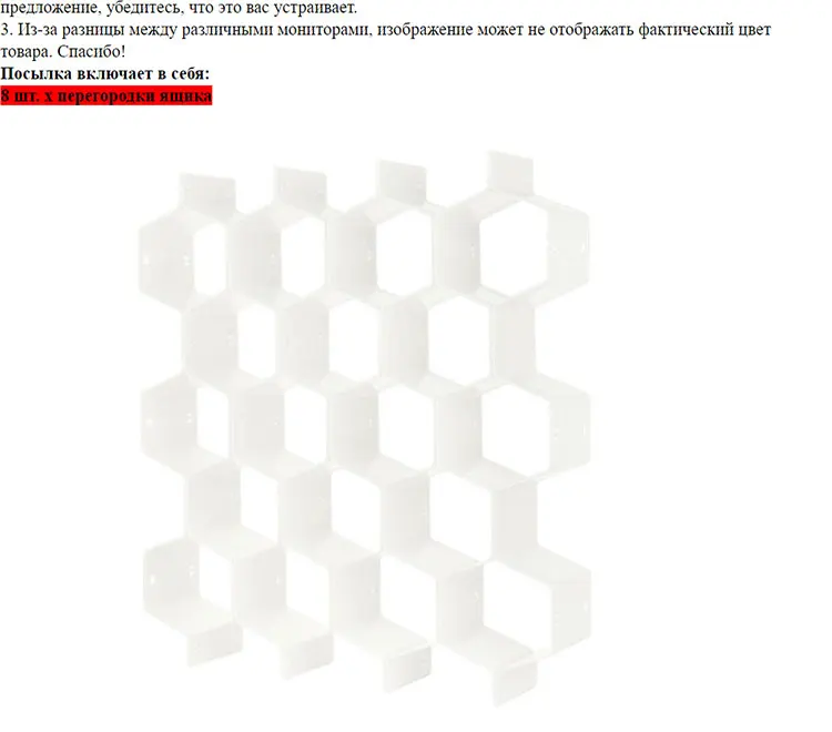 Органайзер в Форме сот 8 Разделителей для Ящика Пластикавая Перегор...