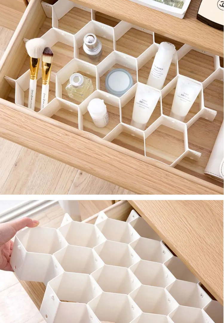 Органайзер в Форме сот 8 Разделителей для Ящика Пластикавая Перегородка для Хранения Нижнего Белья Косметики Бутылки и Мелочей