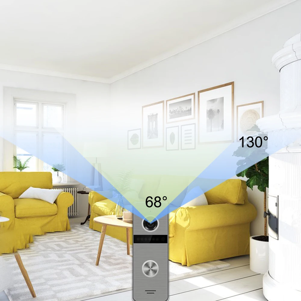Это видеодомофон с функцией Wi-Fi, которая поддерживает работу с мобильными телефонами, когда Посетитель нажимает на дверной звонок, ваш телефон получит уведомление приложения, это означает, что вы можете использовать приложение для открытия двери, разговаривайте с посетителями, смотрите видео и так далее, когда Посетитель нажимает дверной звонок, ваш телефон получит уведомление приложения.