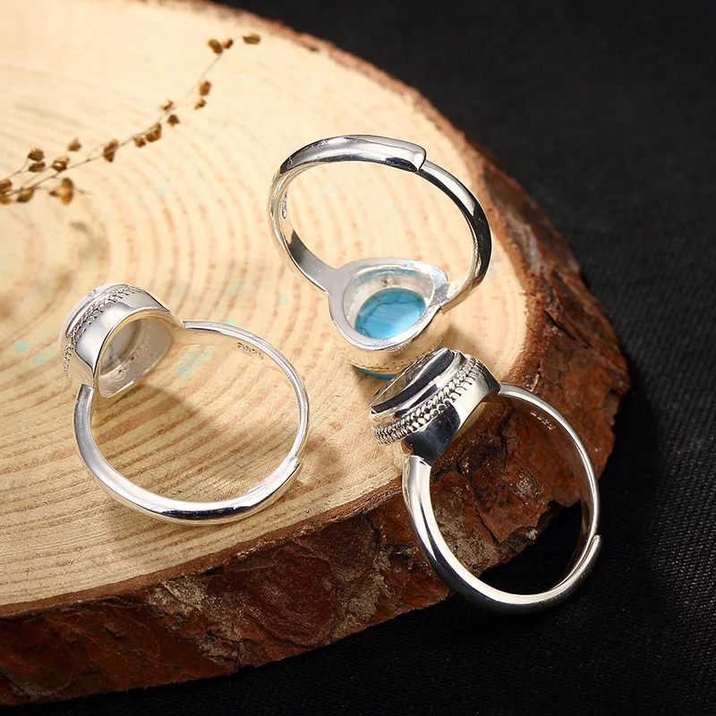 Новый S925 драгоценных камней стерлингового серебра инкрустированные кольцо из бирюзы с пикантная Корейская простая красивая обувь; Большие размеры; Классические женские кольца, бижутерия оптом K0141