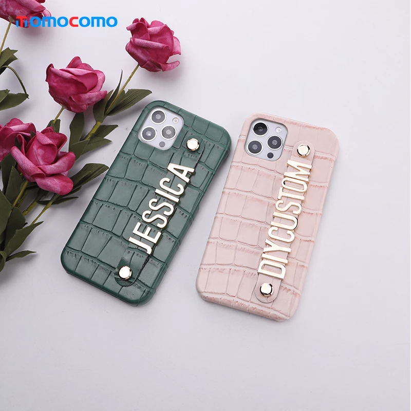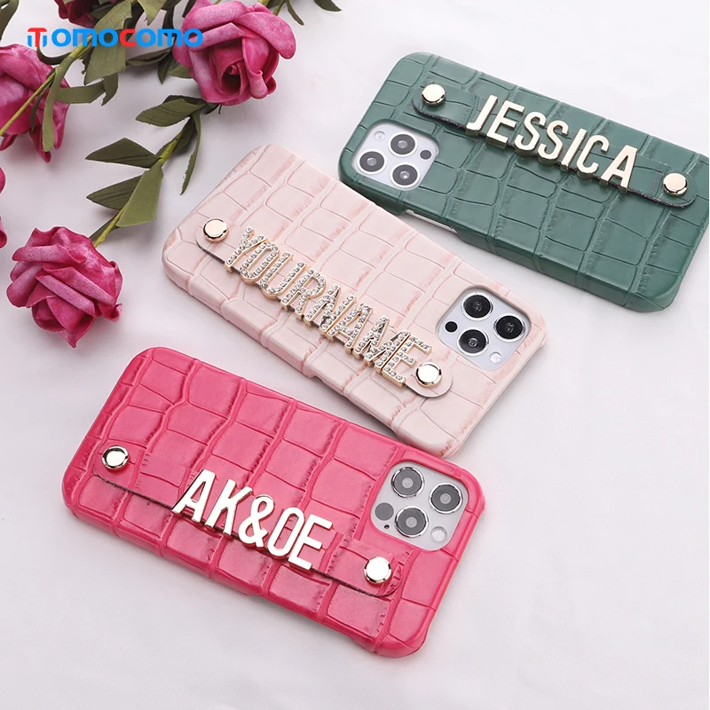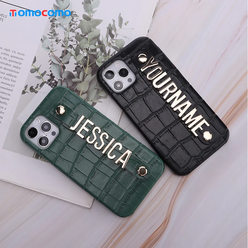 Роскошный чехол из крокодиловой кожи с именем под заказ для телефона iphone 11 12 13Pro Max Mini 7 8 Plus X XR XS Max, металлический чехол с алмазными буквами