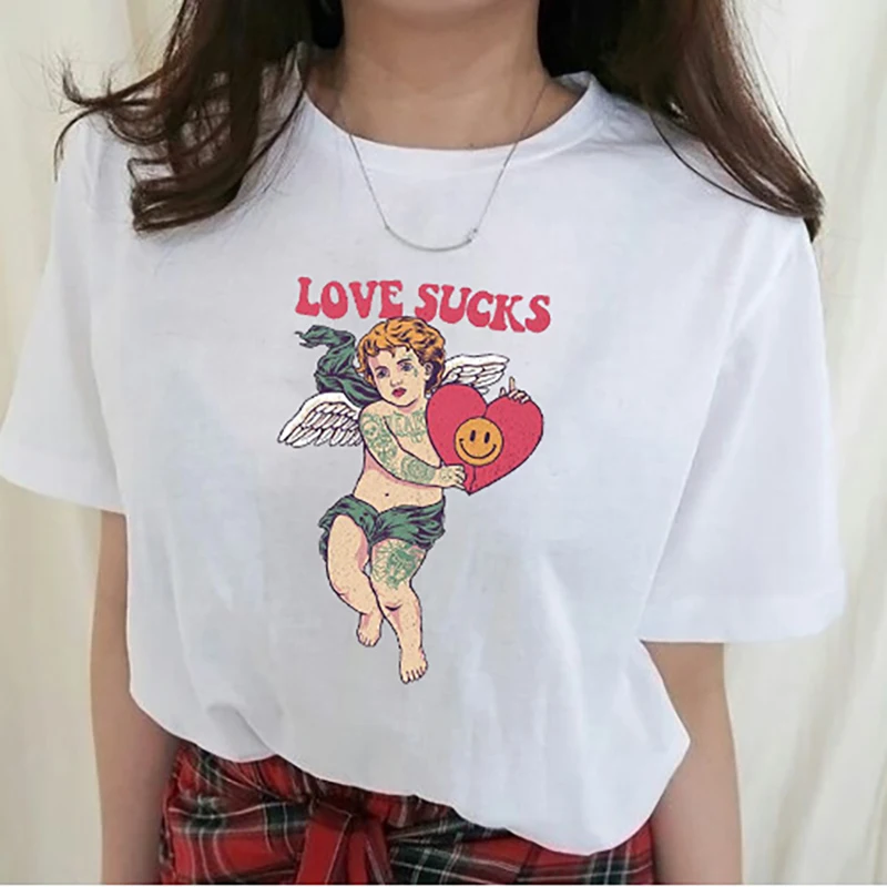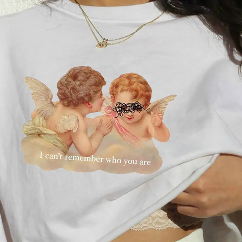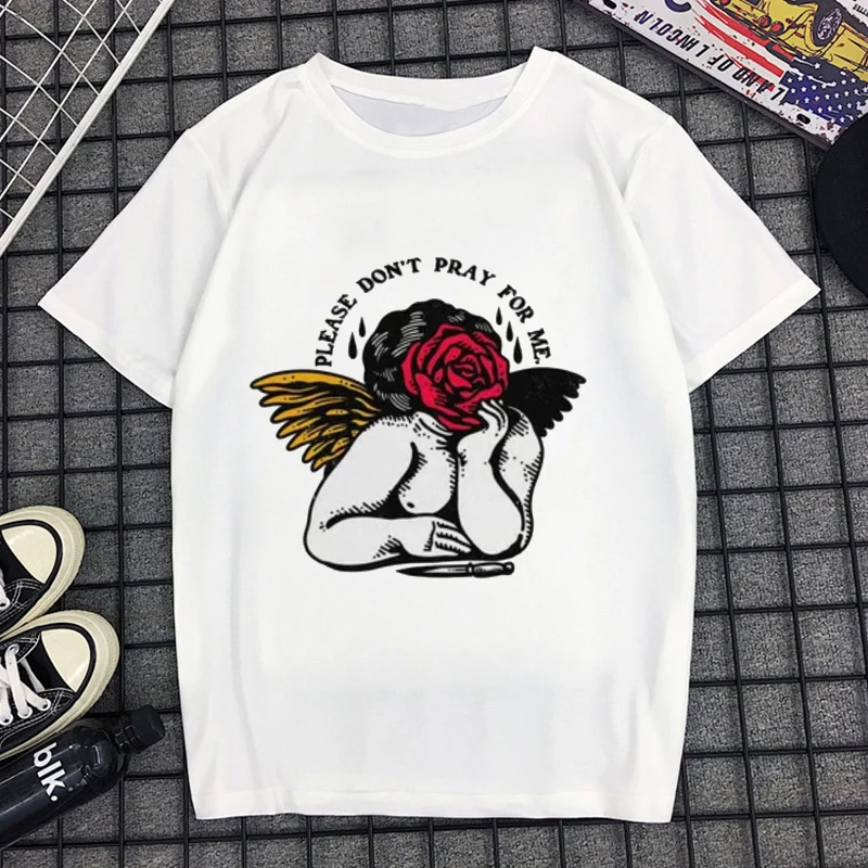 Dreamchase-JF забавные ангелы печатных футболка женская футболка с коротким рукавом из хлопка; Утепленные модные o-образным вырезом Street Стиль футболки с принтом