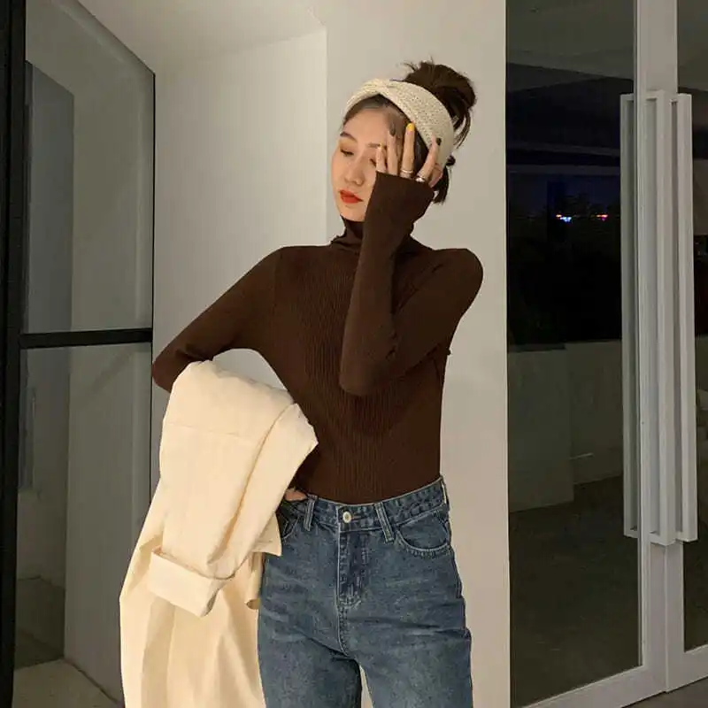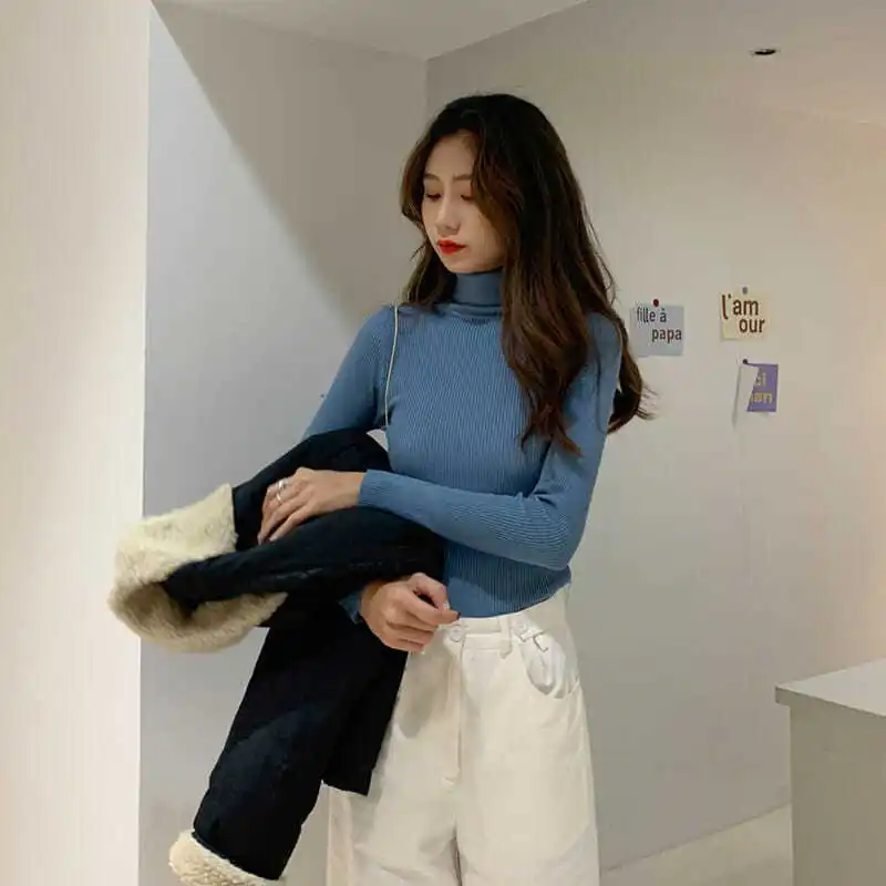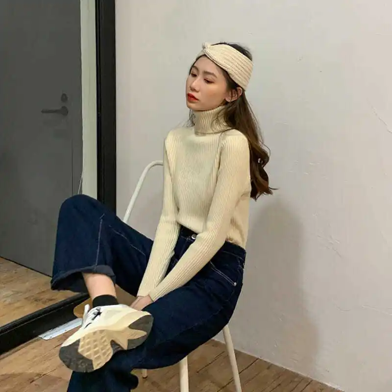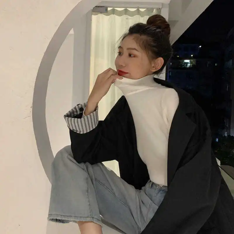 Женская обувь новая полосатая пуловер вязаный свитер с длинным рукавом с высоким, плотно облегающим шею воротником тонкий Детский комбинезон мягкий теплый Pull Femme осень-зима толстый свитер