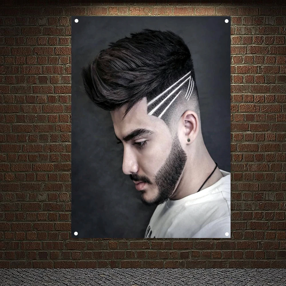 Деловая резьба, баннер для прически, настенное искусство, постер с короткой бородой, флаг, Картина на холсте, элегантные стрижки волос для мужчин, гобелен, домашний декор