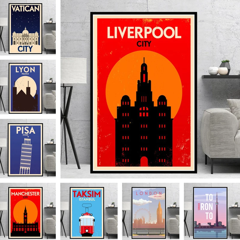 Настенная картина в стиле ретро, Лондонский город, тадж-махал, Карт...