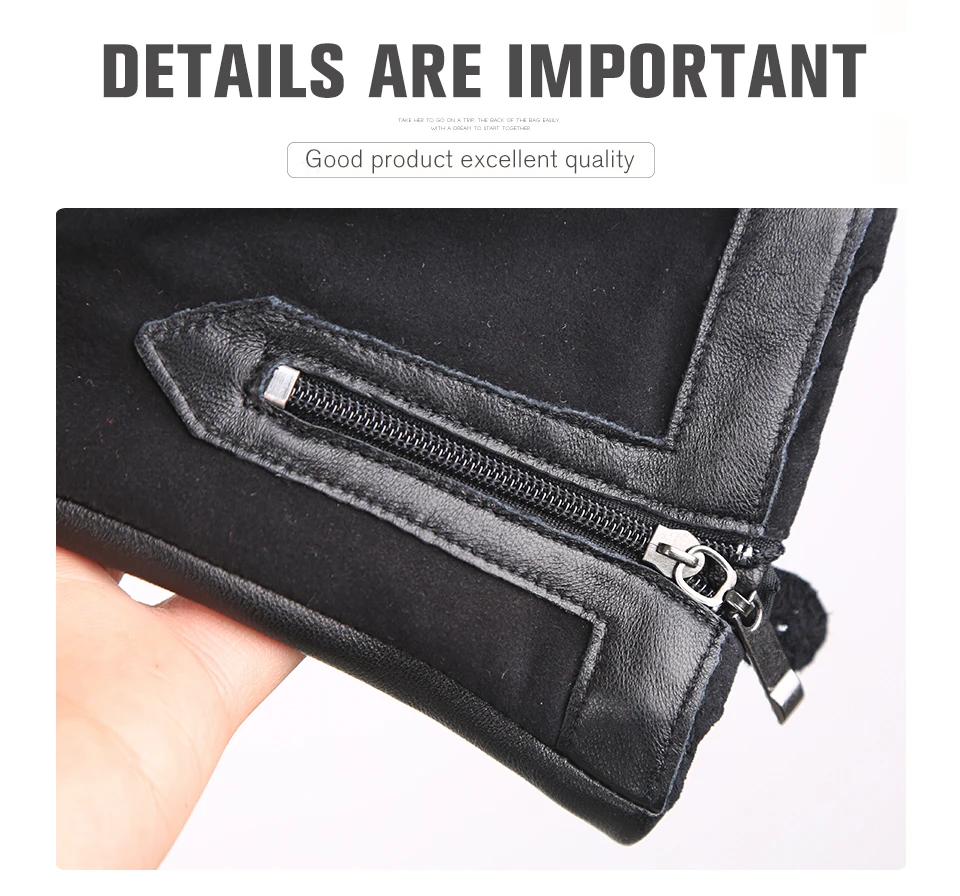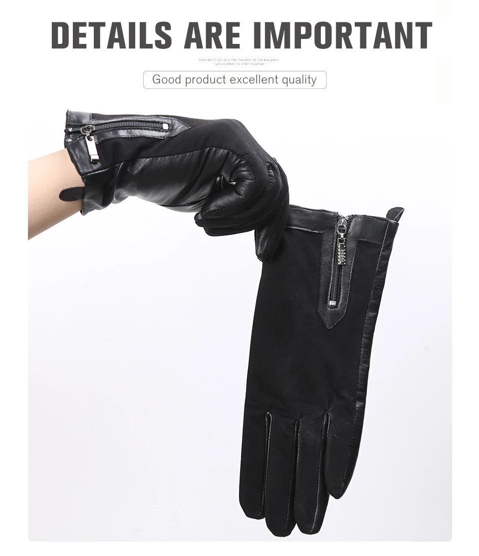 Аксессуары для одежды, женские перчатки из овечьей кожи, черные удобные кожаные перчатки, теплые плотные зимние перчатки-0716
