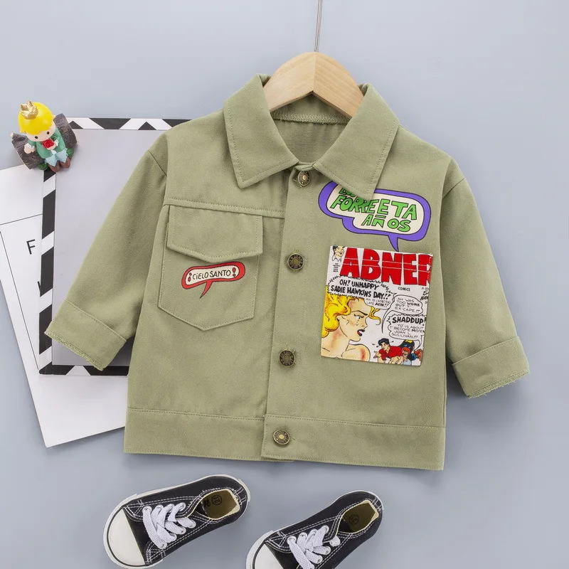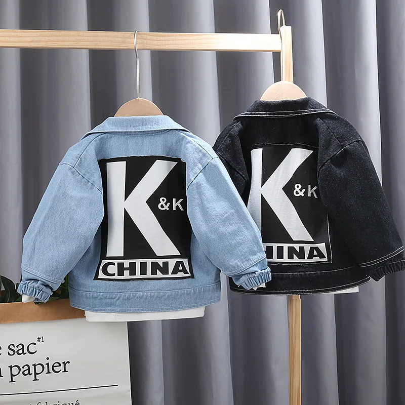 Куртка детская джинсовая, на молнии, с надписью, осень 2021