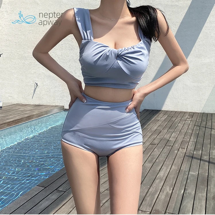 Новинка лета 2021! Корейская версия простого бикини с высокой талией, закрывающий живот, тонкий раздельный купальник, женский, замачиваемый в горячую весну.