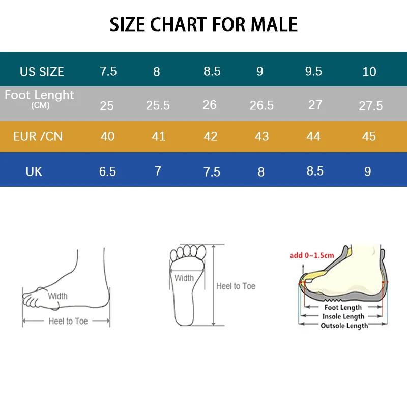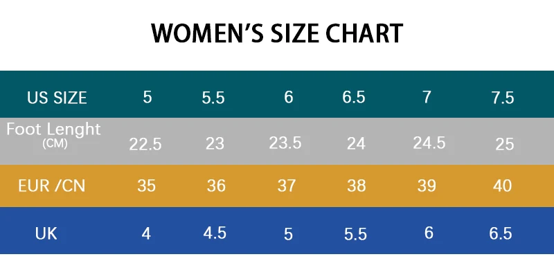 Nota: Si sus pies son anchos o gruesos, recomendamos elegir un tamaño 0,5 mayor que la talla estandar.