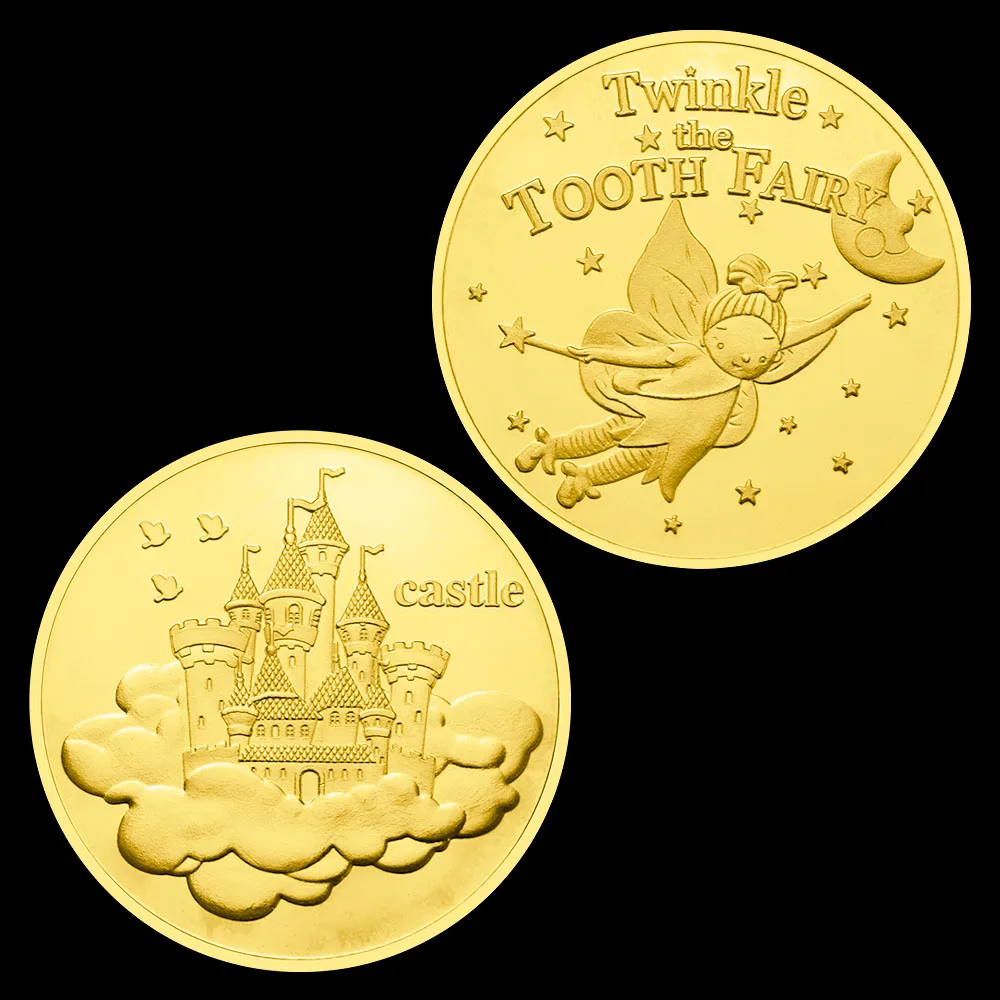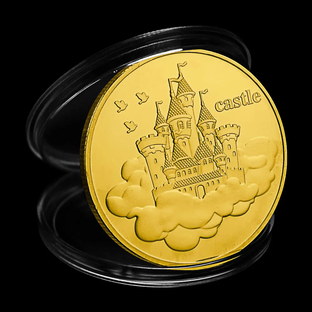 Коллекционная позолоченная сувенирная монета мерцающие зубы, подарок в виде сказочного замка, коллекционная памятная монета