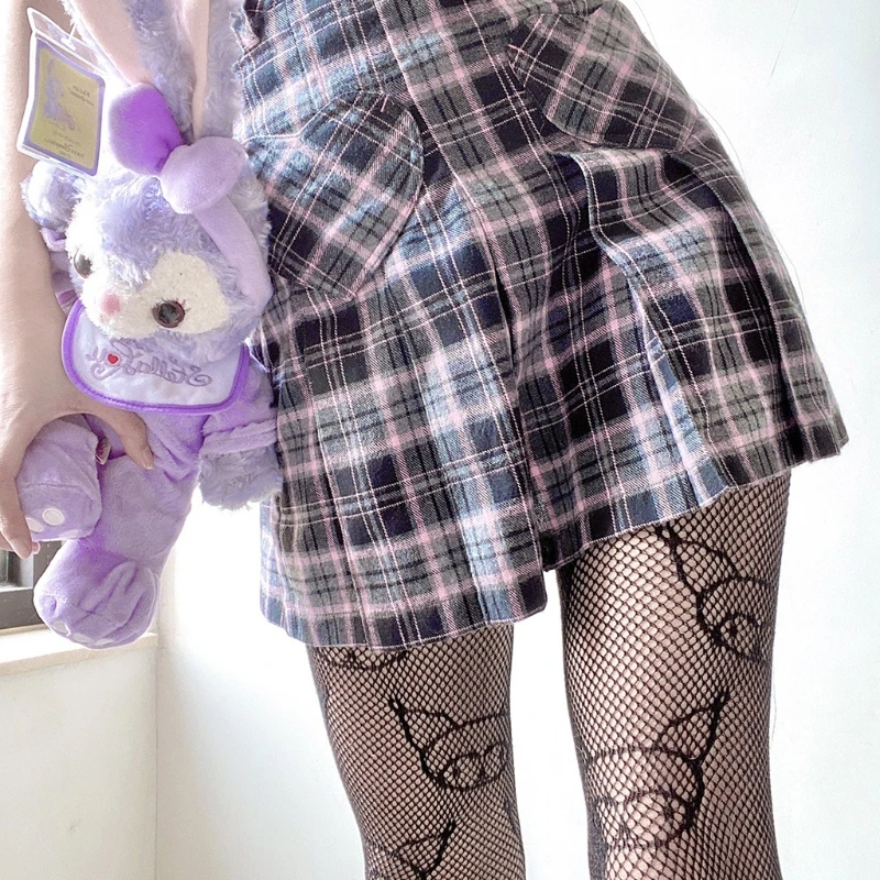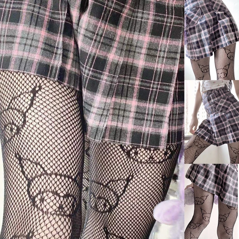 Готический панк стиль, ажурные сетчатые колготки, японский аниме Рисунок дьявола жаккард.