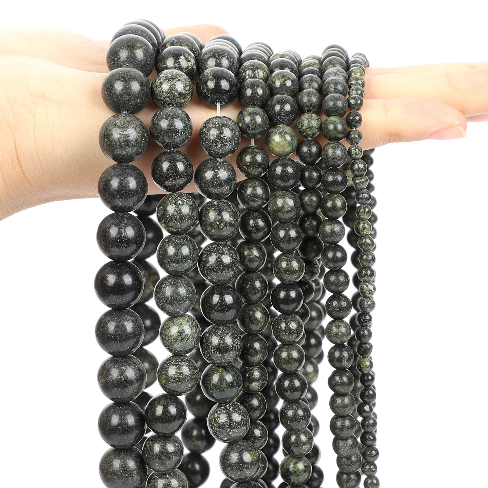 Бусины из натурального камня, темно-зеленые круглые бусины-распорки, бусины для рукоделия, нити 4681012 мм
