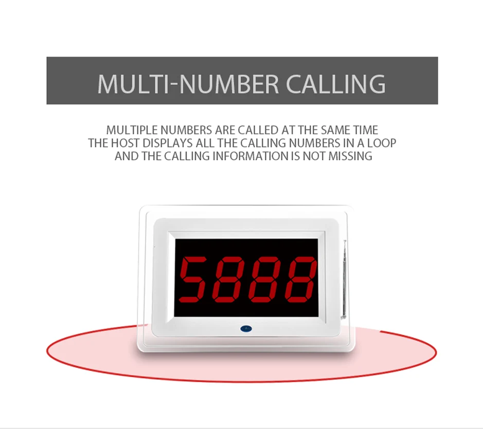 6,99-канальный режим выключение экрана через заданный промежуток времени дисплей 01A/B/C-99A/B/C (банковский перевод), звук ldquoDingdong + No.1-99 callrdquo и показать функция кнопки A/B/C (A: заказ, B: звонок, C: оплата)
