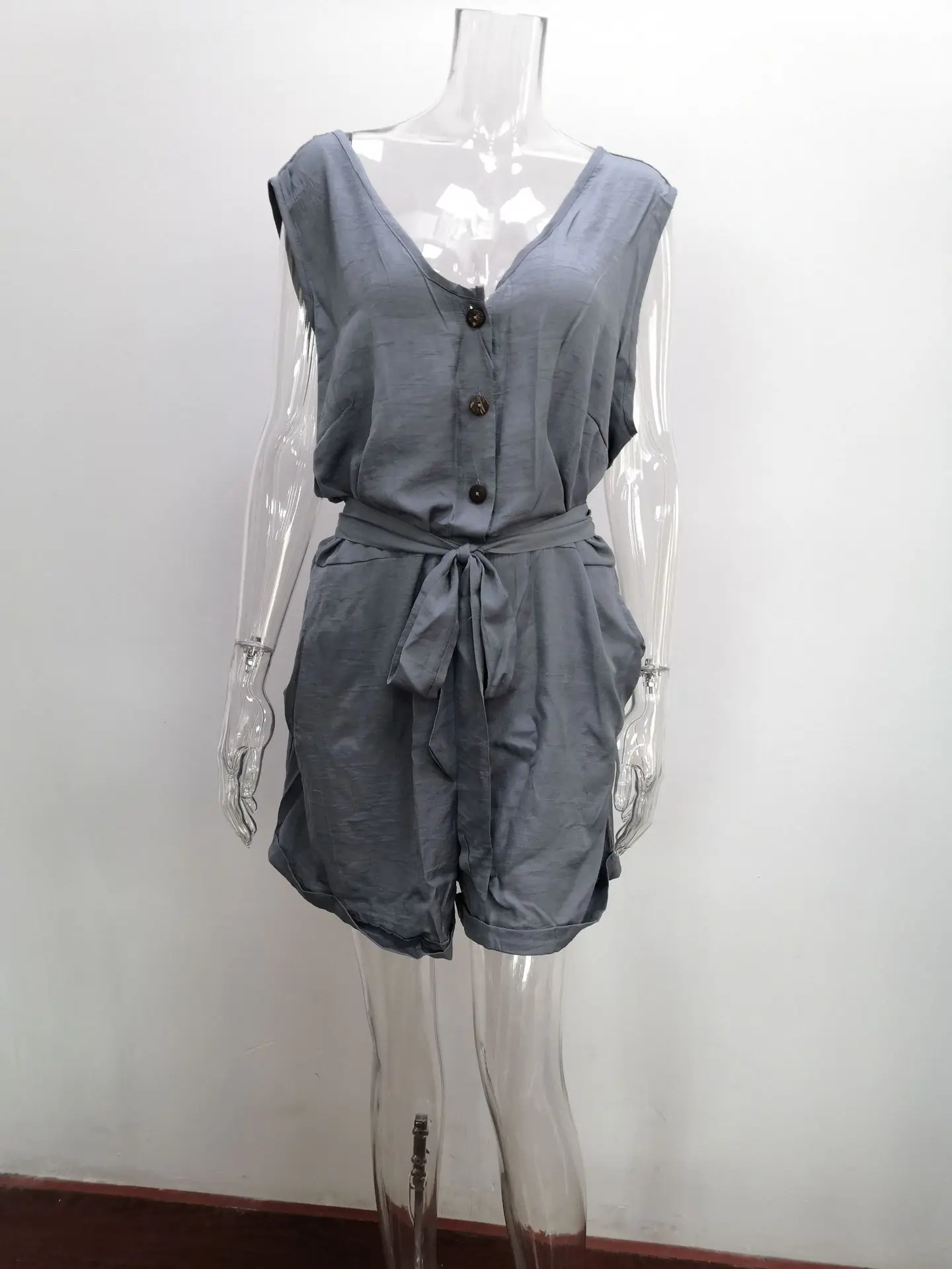 Женский комбинезон без рукавов, повседневный комбинезон на пуговица...