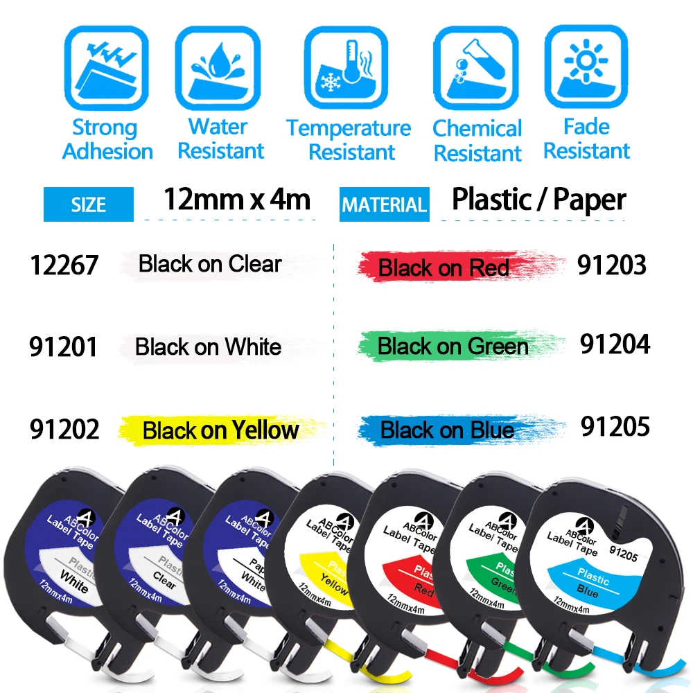 1 шт. совместимый для Dymo LetraTag 91201 12267 91202 91203 91204 91205 91200 LT запечатанных лент для разных цветов для Dymo LT100H этикетировщик